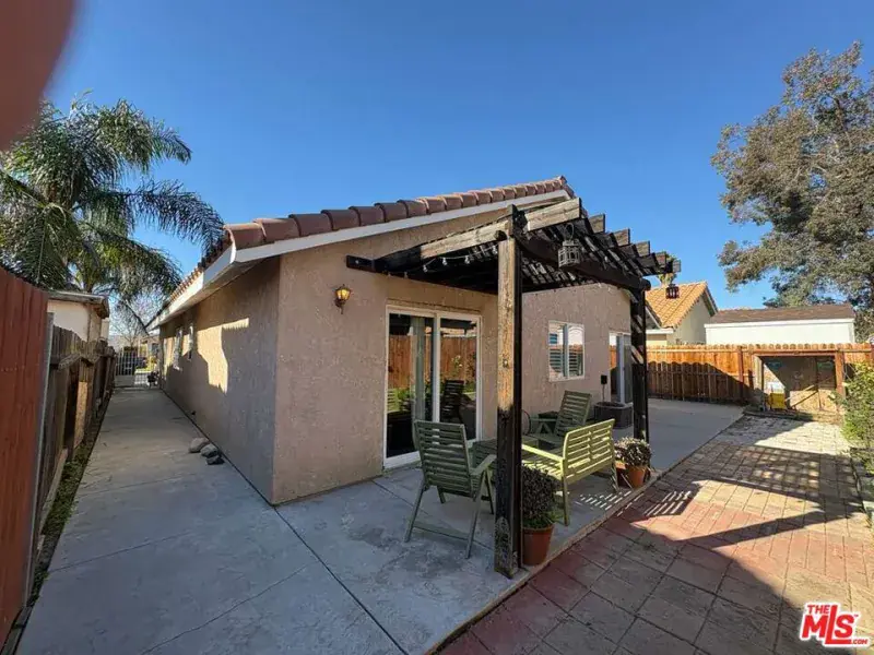 Nestled in a quiet West Hemet neighborhood, this well-cared-for 3-bedroom, 2-bath home offers a welcoming and versatile layout. The third bedroom is currently used as a den and does not include a closet, while the converted garage provides a large family room that could easily function as a guest bedroom. Inside, the home features a spacious living room, a separate formal dining area, and a bright kitchen with ceramic tile flooring and countertops, recessed lighting, and a cozy breakfast nook. The primary suite includes a walk-in closet, dual sinks, a relaxing soaking tub, and sliding glass doors that open to the backyard. Both the front and backyard are gated and fenced, showcasing attractive hardscape and beautifully maintained plants. Vaulted ceilings and ample windows fill the home with natural light, creating a bright and open atmosphere. The enclosed outdoor spaces are ideal for entertaining, gardening, or simply enjoying the outdoors.