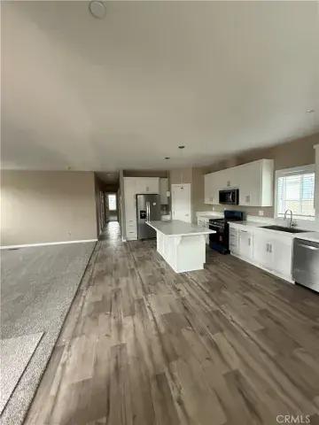 Welcome to this Brand New Manufactured Home on a permanent foundation, located in Hemet. This 3-bedroom, 2-bath home features a charming front porch and a bright, open floor plan. The kitchen is highlighted by quartz countertops throughout, ample cabinetry, and a spacious walk-in pantry, making it perfect for everyday living and entertaining. The primary suite offers a relaxing retreat with a large walk-in closet and private bath. Quality finishes and functional design make this home move-in ready and a must see.