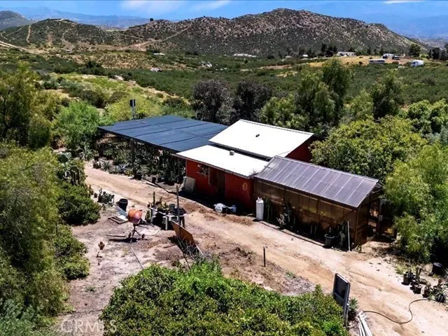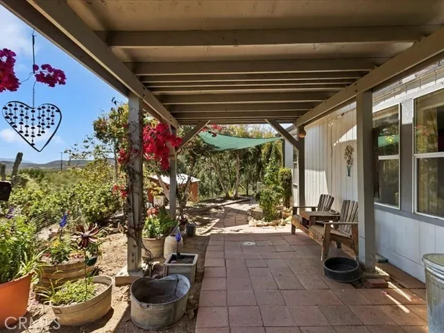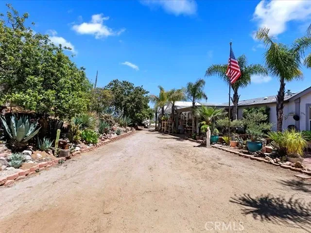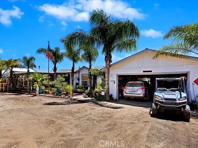 Fantastic ranch nestled 4.86 acres of beautiful usable land. 10 Minutes to Temecula. This manufactured home boasts an abundance of natural light and offers a serene escape from the hustle and bustle of city life. Spacious 4 bedrooms with 3 bath, charming kitchen that overlooks the beautiful views and wonderful birds of all kinds. Darling porch front and back. Two car garage and plenty of parking space. Brand new roof on house and garage, and new patio covers. Step outside to explore the stunning grounds adorned with beautiful gardens featuring 12 citrus trees, 12 assorted fruit trees, and 200 olive trees, creating a true oasis of tranquility. With 2 wells and solar panels, sustainability meets convenience. Wander the trails that meander through the property, or indulge your green thumb in the 2 greenhouses while utilizing the 4 Tuff sheds for all your workshop or storage needs. . Fantastic views with usable land. Enjoy diverse birdlife or simply enjoying the peaceful ambiance from the covered patios. Close to wineries, yet secluded enough to offer privacy. This home is fully fenced and cross-fenced with a security gate for added peace of mind. Miles of trails and plenty of room for horses.