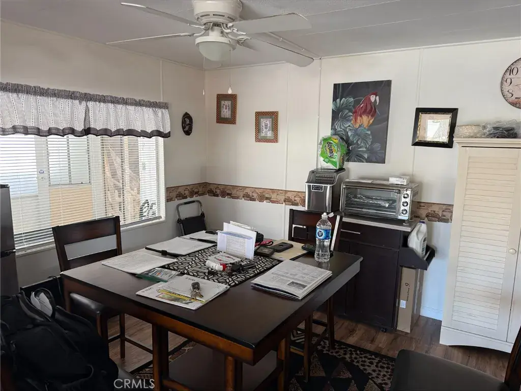 The home has two big Bedrooms and 2 full bath, plenty of cabinet space in the kitchen and a portable island as well. The dining is of course right off the kitchen. The huge living room spans the entire length of the home and has the best mountain views. Inside laundry room.