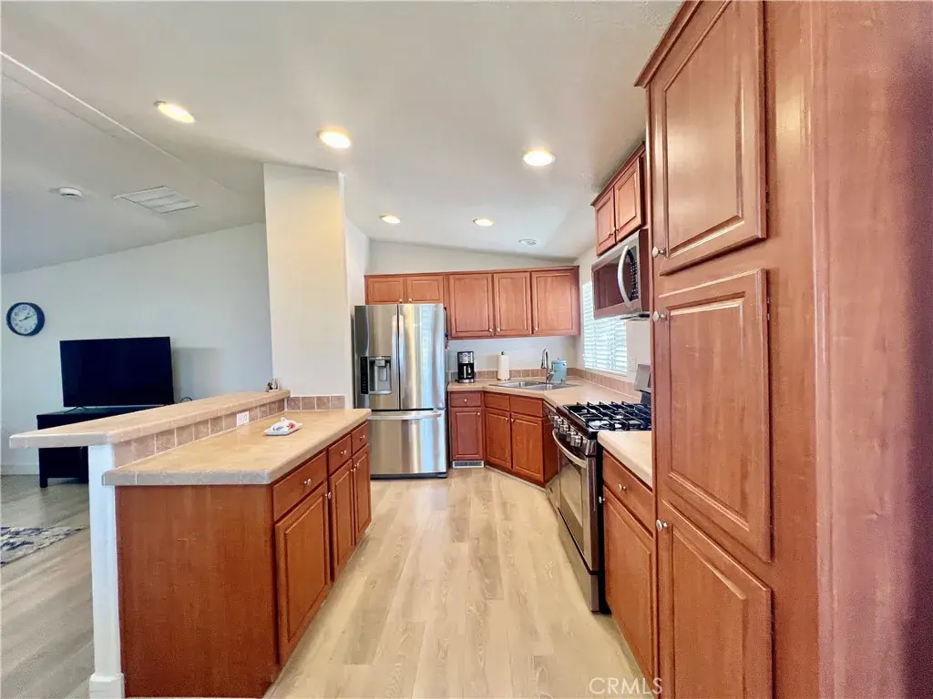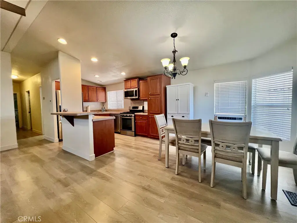 PRICE REDUCED!!! Desired 55+ Scenic, Community of Rancho De Anza. This 2005 beautiful 3 bedroom, 2 Bath, Manufactured Home is MOVE IN READY. All DUAL PANE WINDOWS. STAINLESS STEEL APPLIANCES including a REFRIGERATOR, MICROWAVE, DISHWASHER. Laminate Wood flooring for ease of cleaning. Kitchen open to living room & dining room with breakfast bar. Indoor laundry room (WASHER & DRYER INCLUDED) and extra built-in cabinetry and direct covered carport access. Huge master bedroom with ceiling fan and wardrobe closet. Master bathroom with vanity sink, step in shower stall & large soaking tub. Two nice size guest bedrooms with wardrobe closets. Guest bathroom has shower/tub combo. This is a low maintenance manufactured home for years to come. Enjoy your morning or afternoon beverage from your front porch with incredible views of the mountains. Large storage shed and separate area with table & chairs & a double swing great area for entertaining. Park offers Swimming Pool, Jacuzzi. Billiards and a Clubhouse. Nice peaceful, quiet Park. Retirement at its finest!