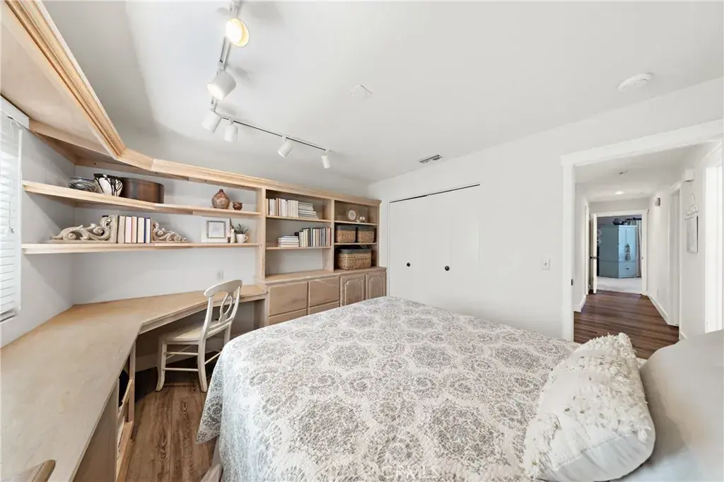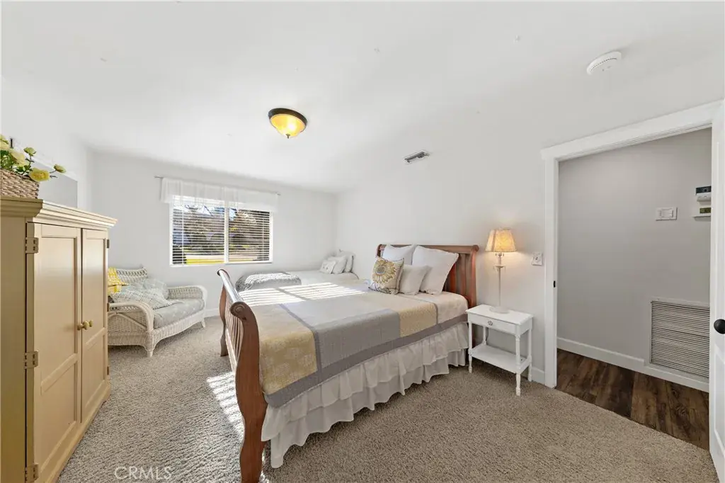 A permitted addition expands the family room, enhancing the home’s flow and versatility. Additional interior highlights include a built-in desk in the office, extensive hallway storage, newer flooring installed approximately five years ago, two water heaters, and a hall bathroom with a cast iron tub. The A/C units were also replaced approximately five years ago, and the home is equipped with a security system and paid-off solar.