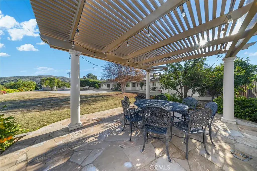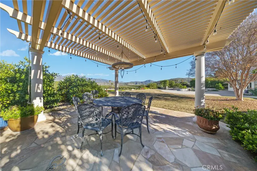 Outdoors, the property truly shines. A Pebble Tech swimming pool anchors the backyard, surrounded by mature fruit trees including lemon, lime, mandarin, orange varieties, and Cara Cara, creating a picturesque setting ideal for hosting gatherings and special occasions. The expansive lot, scenic views, and tranquil environment present a rare opportunity for buyers seeking a luxury retreat with potential for private events or future venue use, subject to buyer verification and local regulations. Horse-friendly zoning further enhances the property’s appeal.