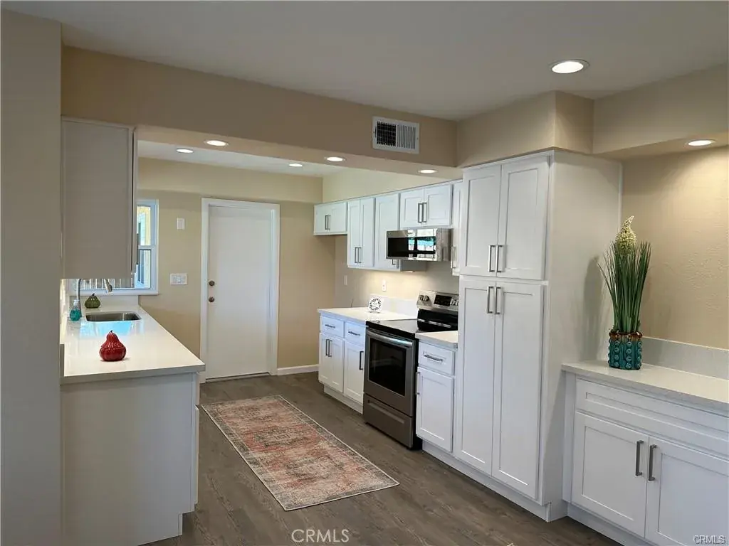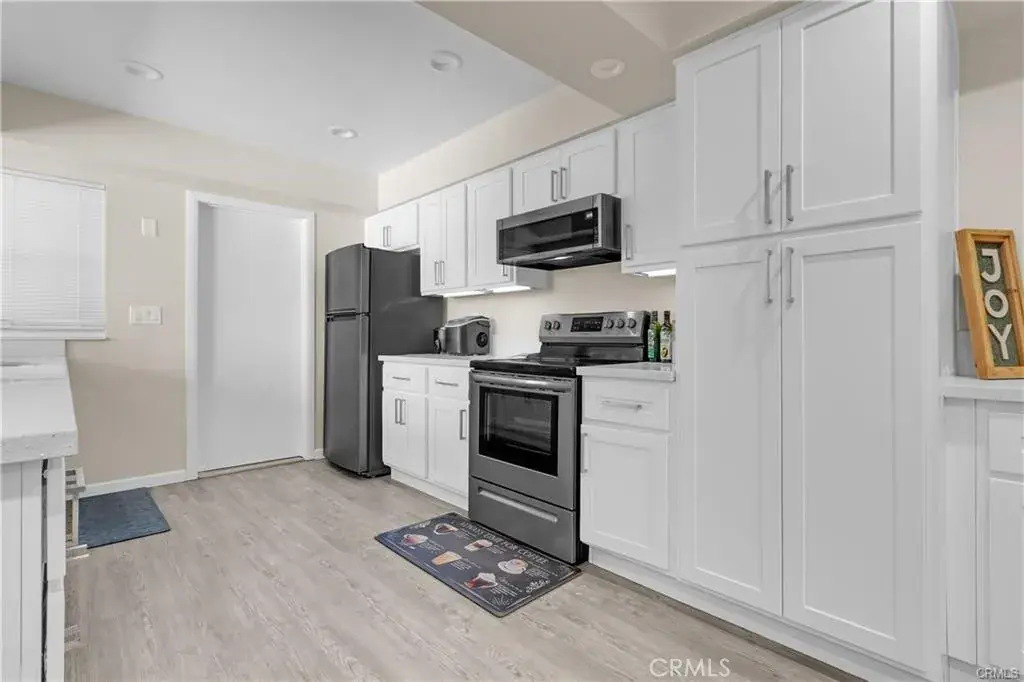 HOUSE + ADU, . The initial home is a 3-bedroom, 2-bathroom. To the left, entering the hallway to the master bedroom with a new master bathroom, his and hers closet. The other two bedrooms face the lovely backyard and share the hallway’s new bathroom. The kitchen is a total delight with White cabinets, quartz countertops, and stainless-steel appliances. From the kitchen, you go into the patio and to the backyard through the French doors. Also, from the kitchen, there is a direct entry to the new unit with two bedrooms, two bathrooms, a storage closet, and a laundry area. The garage was transformed into a 2-bedroom, 2-bathroom unit to fit the needs of the extended family. Each of these two bedrooms has its own AC unit for convenience and energy savings. The unit has a private entrance from the patio, LOW maintenance landscaped backyard with automated sprinklers and beautiful night lighting. You have amazing views of the San Jacinto Mountains right out of your kitchen window (No HOA, No Mello-Roos taxes, Low property taxes), Lot Size is 15,246, enough space for RV Parking. Appliances Included: Stove, Dishwasher, Microwave & Fridge.