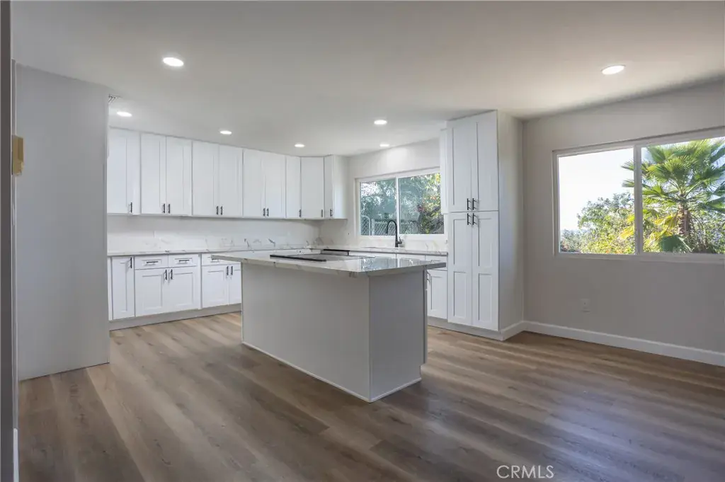 The home features fresh interior and exterior paint, new dual-pane windows, new flooring, new sliding door, and recessed lighting. The brand-new kitchen is a standout, offering abundant cabinet space, elegant quartz countertops, a large center island, and new appliances…Perfect for both daily living and entertaining.