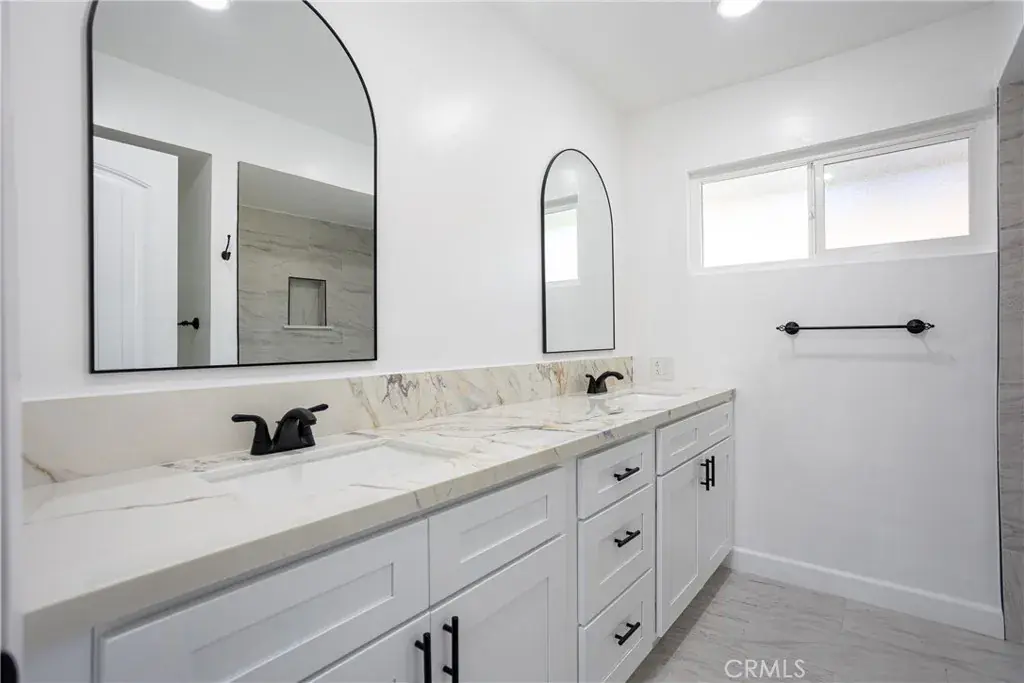 All bathrooms have been fully remodeled with stylish wall tile, quartz countertops, new vanities, updated fixtures, and modern lighting. Two of the bathrooms feature dual sinks for added convenience.