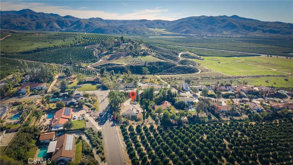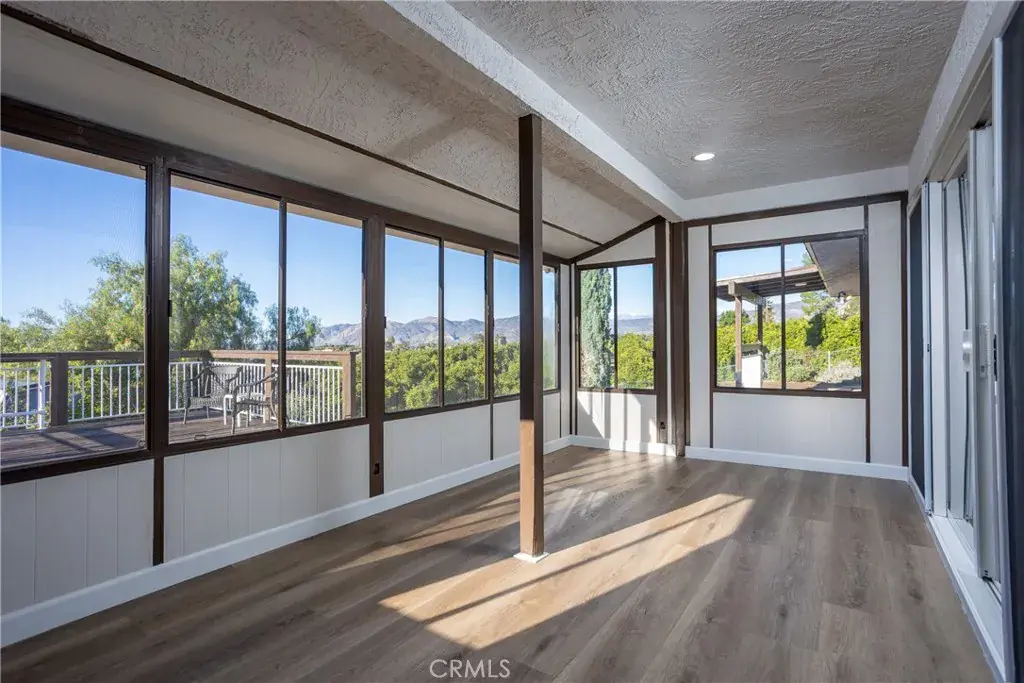 Enjoy indoor-outdoor living with an enclosed patio/sunroom and a spacious deck that showcases breathtaking views of the surrounding orange groves, rolling hills, and distant mountains, an ideal space to unwind and enjoy the tranquility.