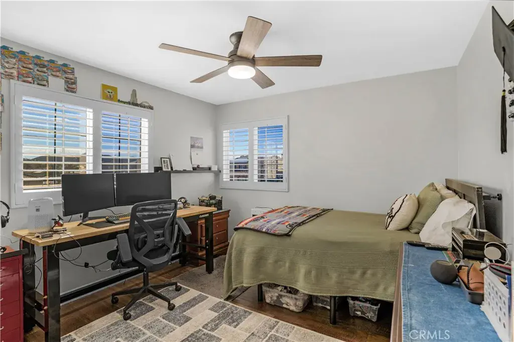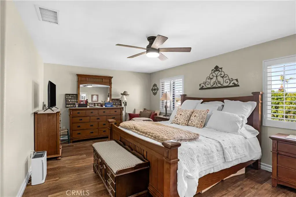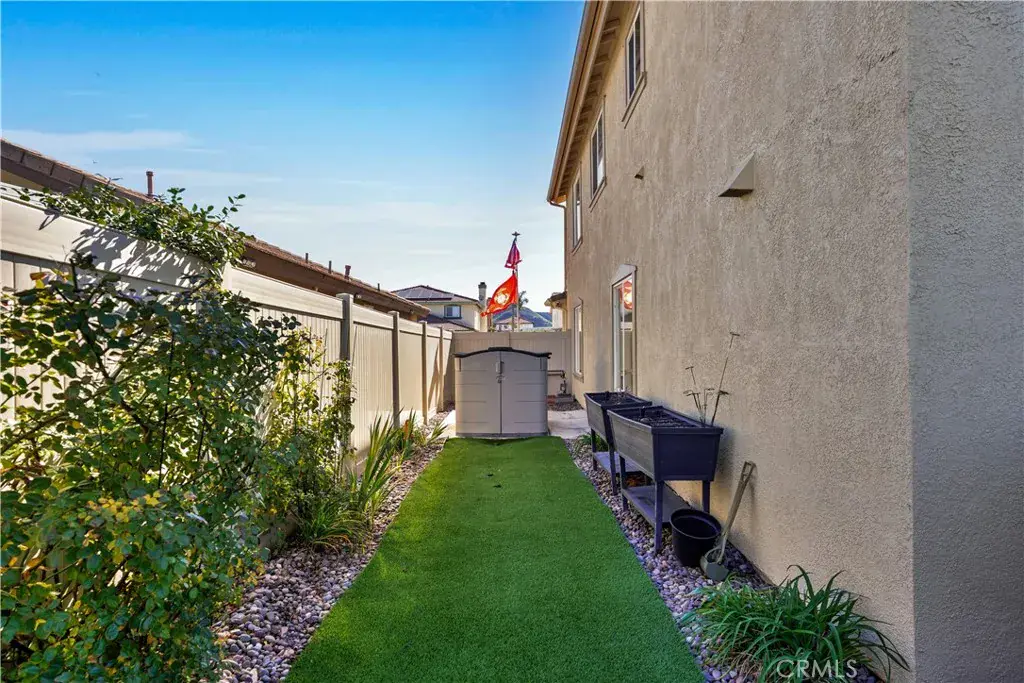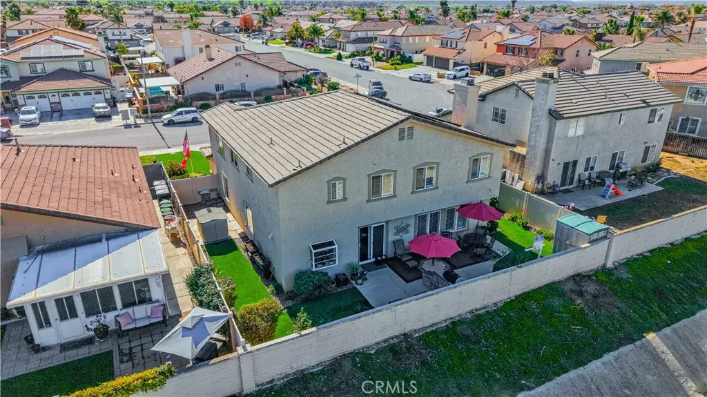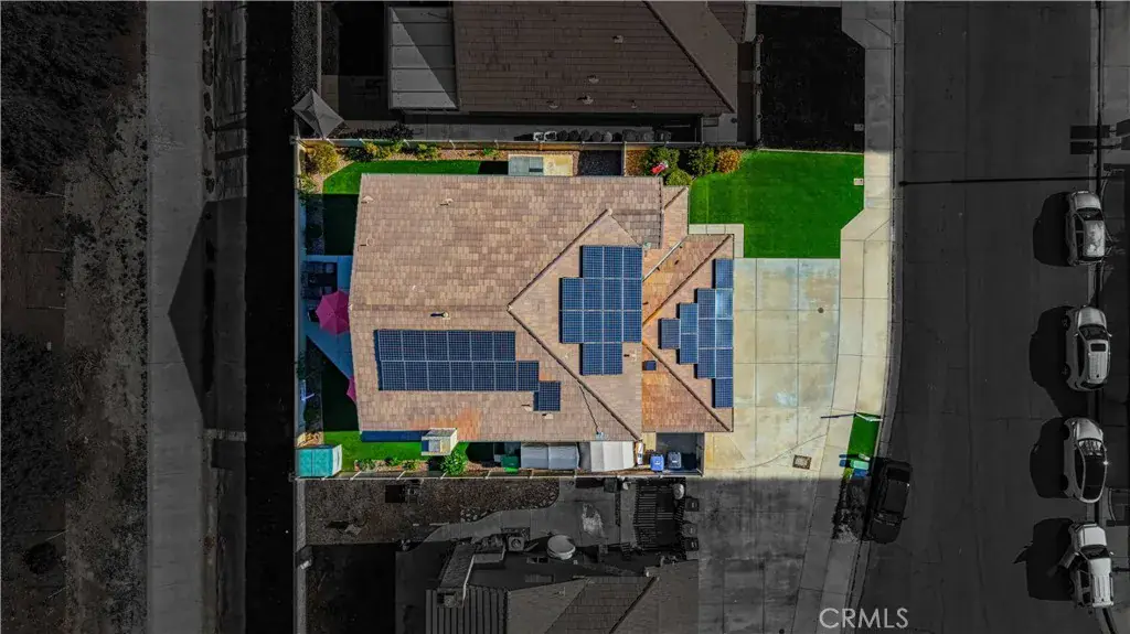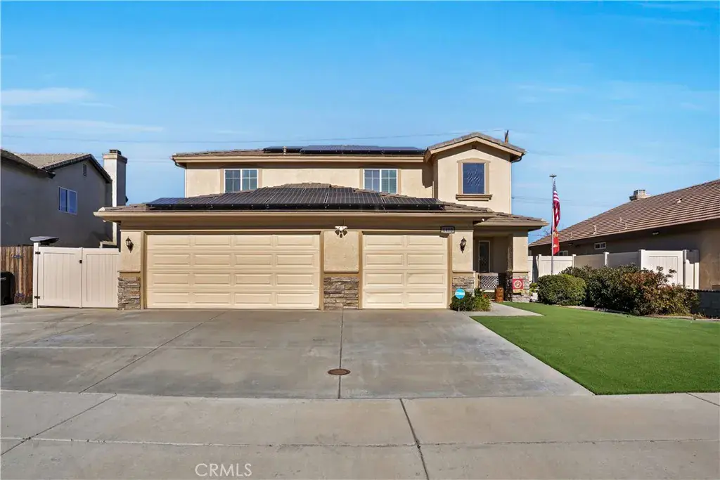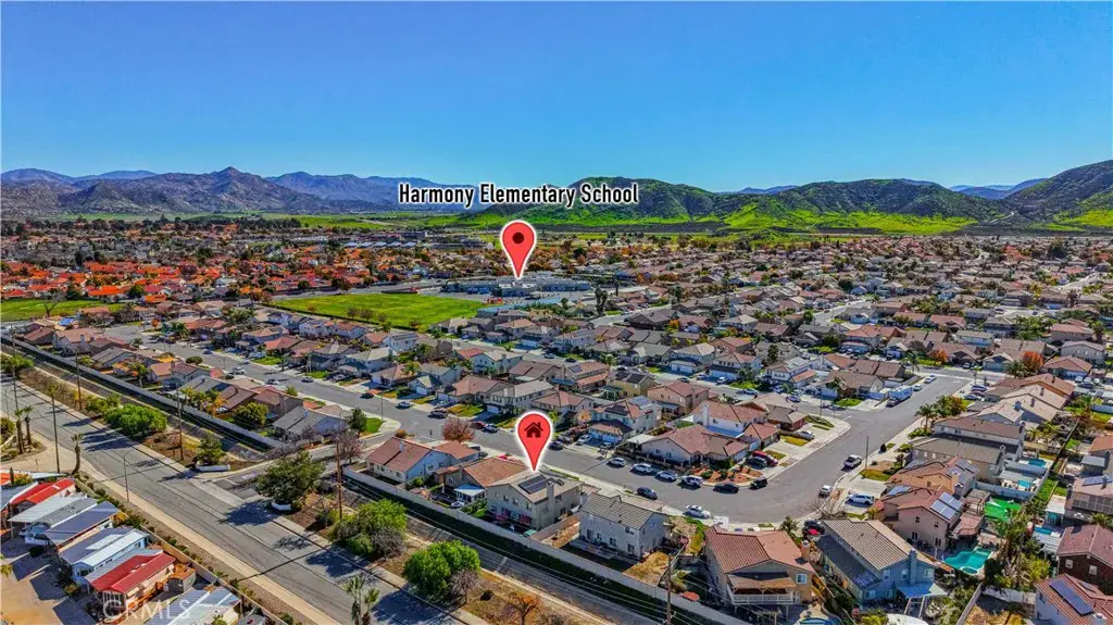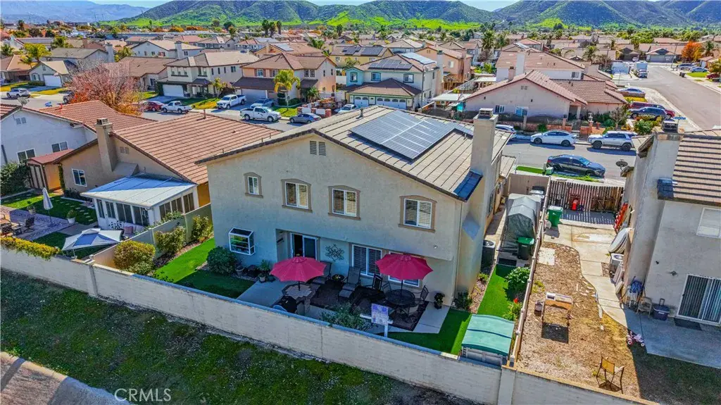 A beautiful and spacious 3,100+ sq ft home in West Hemet. Steps away from Harmony Elementary school and West Valley High School, it is conveniently located near Domenigoni Parkway. Home is powered by Solar (35+ panels), has 3 Tesla powerwalls – you could run on solar in the morning and run off grid in the evening, and even an EV Charging plug in the 3-car garage all designed to save you money and gasoline too!!! This two-story home with a loft boasts 5 bedrooms, 3 bathrooms, and an upstairs laundry. Lovingly maintained home features plantation shutters, LVP flooring, granite countertops in the kitchen, a whole house water filtration, tankless water heater, new ceiling fans, whole house fans in each upstairs bedroom, and much more. Attractively landscaped front yard with lush synthetic turf. The backyard is fully enclosed with newer vinyl fencing installed in 2020 and offers exceptional outdoor living space. Multiple cement patio pads provide ample room for seating and entertainment. A built-in outdoor barbecue kitchen with refrigerator creates the perfect setting for gatherings with family and friends. This home is not in an HOA and has low taxes and no mello roos.