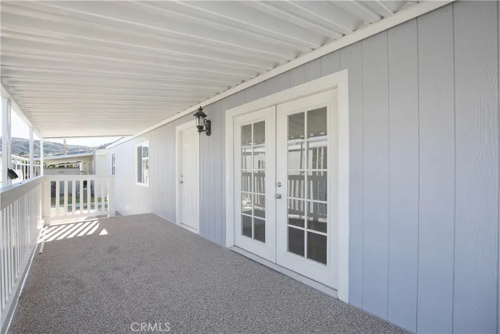 Welcome to ALL AGE Vista De Oro Mobile home park! Unit 104 has been newly renovated and ready for its new owner in a beautiful and quiet community! As you enter the home, you will find an open concept layout, kitchen is equipped with all brand new countertops, cabinets, stove, sink, faucets and dishwasher. Just off the Kitchen is the primary bedroom with a walk in closet and the master bathroom has new toilet, sinks, cabinets and resurfaced tub/shower combo. On the other side of the kitchen you will find the laundry room, washer and dryer hook-ups with access to the carport. Down the hall you will also find a BONUS ROOM for an office! You can also enjoy a brand new fully shaded porch and a two car parking port. OTHER UPGRADES: New roof, new windows, new water heater, new bedroom closet doors, new siding, new laminate waterproof flooring throughout, plumbing, new paint inside and out, new foundation support beams and all brand new foundation installation of the mobile home with earthquake system. Conveniently close to parks, Orange groves, shopping centers, Valle Vista Elementary school, Hemet High school and much more! Park approval needed, Space Rent $912 mo, 5 year lease, Sold as is condition, buyer do your due diligence. Raise your family in a safe neighborhood with breathtaking views of our valley’s mountains, as well as enjoying the cool and the fresh air the surrounding orange groves provide! Don’t miss out, schedule your appointment now!