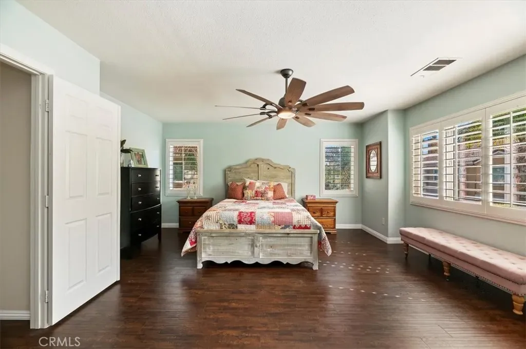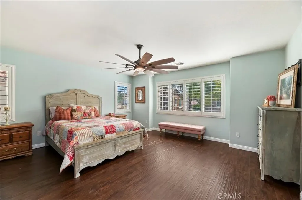 From the moment you enter, you’re enveloped in light and comfort: plantation shutters throughout for privacy and elegance, ceiling fans in key areas, a whole-house fan for effortless cooling, and gleaming engineered wood flooring and tile creating a seamless, upscale flow.