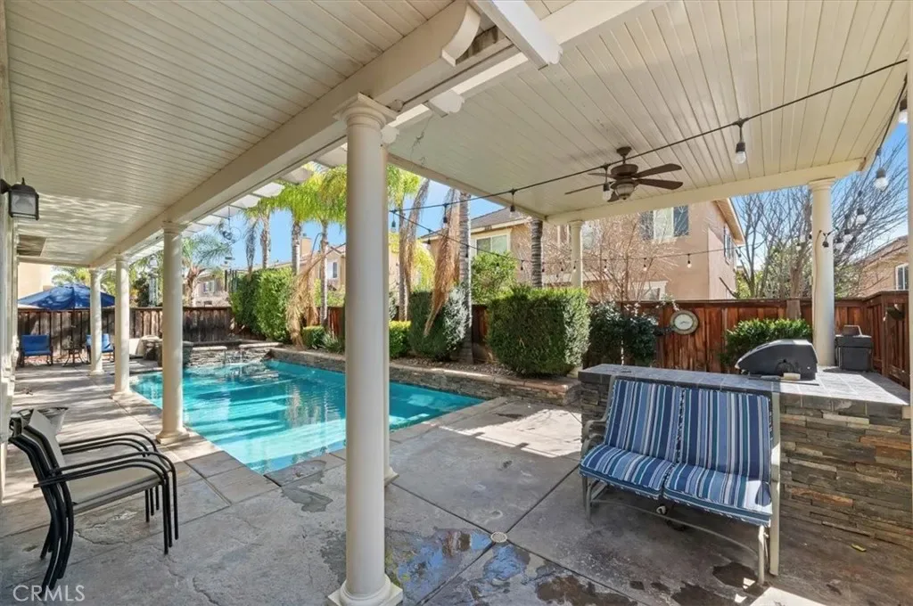 Then step outside… and prepare to fall in love. Your private backyard paradise awaits: a glistening saltwater pool and spa with a mesmerizing waterfall, framed by lush surroundings and the dramatic San Jacinto Mountains. Fire up the built-in BBQ island for sunset dinners, weekend barbecues, or lazy afternoons by the water—pure California paradise right at home.