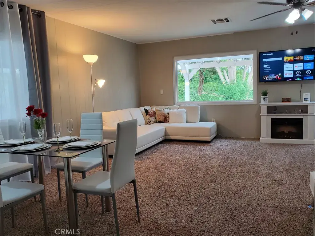 Move-in ready! Beautiful 2 Bedrooms – 2 Bathrooms newly upgraded home with open floor plan, spacious living room and dining room areas. The NEW picture windows are double paned with a full view of the greenery and recreation park closer to the gate and the clubhouse amenities. The TV entertainment room with NEW sliding glass doors goes out to a covered front patio/deck for your relaxation. The kitchen has ample storage space with a pantry, ALL NEW stainless steel appliances, fridge, microwave, wall oven and stove top with exhaust fan and teppan included. The master bedroom has spacious closet and vanity area. The laundry or washer and dryer room has additional storage. There is a California room that you can use as a 3rd Bedroom or home office/den or extra storage space. This home has so many upgrades from 2022 through 2025 including NEW roof, NEW HVAC and thermostat, NEW pipes or plumbing system in the entire home for a clean and fresh water supply, NEW garbage disposal, and a lot more! ALL NEW furniture, exterior and interior paint, wood laminate flooring and carpet in all the rooms, electrical outlets, switches and GFIs were installed. NEW ceiling fans, NEW lighting and exterior lights, NEW sliding doors and NEW dual pane windows. A highly sought after 55+ community of The Lakes at Hemet West with gorgeous views of the private 9 hole golf course and practice facility and mountains. The self-contained community has many features and amenities, including biking, shuffleboard room, clubhouse, banquet facility and full kitchen, BBQ area, olympic size pool, warm water spa, horseshoe pits, pickleball, bocce ball, billiards, dog park, fishing, gym, arts, crafts and ceramics studio, gated RV/vehicle storage area. There are also 4 lakes stocked with fish for catch and release and tons of community activities and clubs. Proximity to medical facilities, 24/7 urgent care, hospitals, banks, WinCo, Walmart, Target, Home Depot, Lowes, Sizzler, Starbucks, commercial shopping areas, fast food and restaurants. Buyer must be approved by The Lakes at Hemet West park management. MUST be 55+ with a combined gross monthly of 3 times the rent (if total space rent is $1,043, income must be $3,129 or more. Three (3) months of documentation or bank statements are required with good credit. Residency must be confirmed by community management upon approval of the buyer’s application.