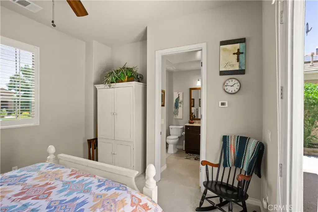 Beautifully upgraded and meticulously maintained, this exceptional property offers a main home with 2 bedrooms and 2 bathrooms, plus a detached 1 bedroom 1 bathroom casita-perfect for guests, a home office, art studio or whatever suits your lifestyle. From the moment you arrive, the homes curb appeal stands out with newly landscaped front yard, Pebble Tec walkways in the courtyard, an oversized sliding glass door in the primary suite-every detail has been carefully considered. Inside, an open-concept floorplan is adorned with plantation shutters, solar tubes, tile flooring, crown molding, high ceilings, all ideal for everyday living. The kitchen features granite countertops, a breakfast bar, pantry and breakfast nook. Adjacent to the kitchen, a spacious laundry room offering ample storage, connects conveniently to the 2-car garage with electric car hookups and plenty of storage cabinets. The living space is centered around a warm fireplace creating a cozy atmosphere on cool nights. Just off of the main space is a versatile den- perfect as a formal dining area, home office, or additional sitting room. The Primary suite is a private retreat, complete with a large walk-in shower, soaking tub, custom walk-in closet, and a private sliding door to your personal spa. The guest bedroom is thoughtfully situated for privacy and comfort. Step outside from either the primary suite or living room into a tranquil backyard oasis-a sense of space ideal for reading, relaxing or entertaining. Homes like this don’t come on the market often, don’t miss this opportunity.