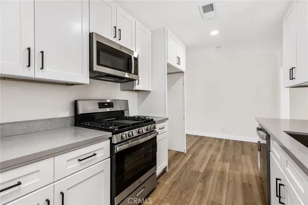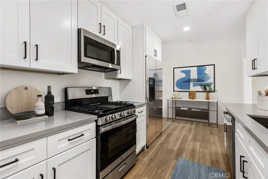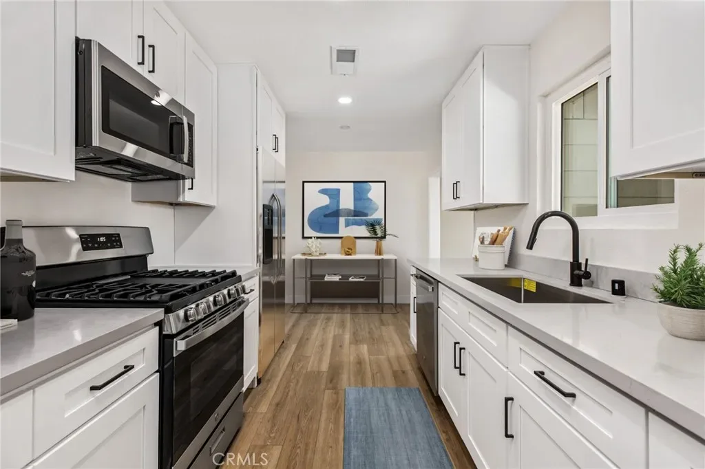 The kitchen features all-new gray quartz countertops, crisp white cabinetry, modern hardware, and stainless steel appliances, delivering a sharp, high-end look that buyers want. It’s a space that feels fresh, functional, and ready for daily living or entertaining.