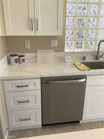This newly upgraded 2 Bedroom 2 Bathroom approx. 1,439 square foot home is located near community amenities including The Lodge which is walking distance. The courtyard patio invites you to enter the front door into the spacious living room with New Carpeting. Other features include a self-igniting gas fireplace, ceiling fan/light, sliding glass door to the private patio. The heart of any home is the Kitchen and this one will not disappoint. The well-lit Galley Kitchen has been newly upgrade and features an abundance of cabinet space, New white shaker cabinets w/brushed nickel handles & slow close drawers. Lovely coordinating Quartz countertop and a 36” wide Quartz Island w/drawers. Appliances include: New Whirlpool 5 burner stove w/air fry/air baking feature, New Range Hood, Newer Midea Dishwasher, New Stainless-Steel farmer brushed nickel Moen Faucet & New Moen Garbage Disposal. A glass block window feature above sink combines natural light with privacy along with recessed lighting. The sliding glass door to the front patio where you have the parking lot to the Lodge. The Primary Bedroom has walk-in closet, ceiling fan/light, En-suite bathroom with a shower that has a bench, dual vanity sinks, private toilet. Across the hall the laundry room with washer & gas dryer hooks ups, direct access 2 car-garage. The second bedroom has closet, ceiling fan/light. Next to the bedroom is a full bathroom with single sink vanity, shower -tub & toilet. This home features New Interior and Exterior paint, BRAND NEW Goodman AIR CONDITIONER & HEATING SYSTEM. New Blinds, New curtains. Double pane windows are original to home and the price reflects this possible need for replacement.