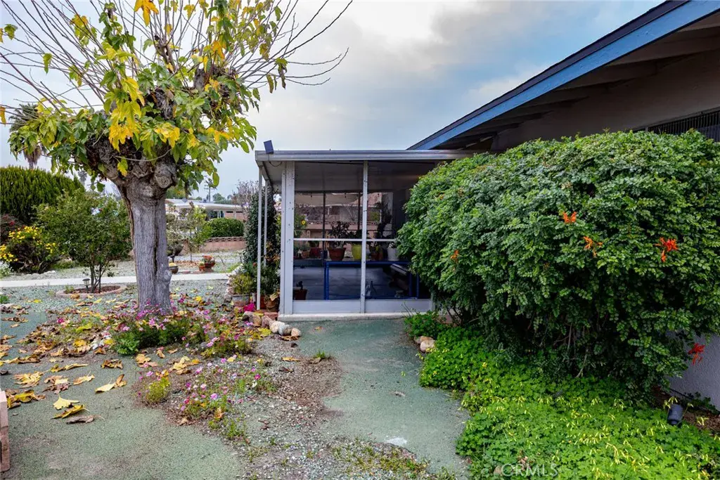 Welcome home to this well-maintained, upgraded 55+ community single level home featuring 2 bedrooms and 2 bathroom in over 1000 square feet of living space. You will find a large front living area with adjacent dining area connected to the upgraded kitchen space. There is also an attached fully enclosed sun room with plenty of space for lounging, entertaining, gardening or whatever you desire. Out back you will find a large wrap around backyard space with plenty of room to make it your own. There are several mature fruit trees on the property including apples, oranges and pomelo. Best of all the community pool is a hop and a skip away from your backyard and almost in your backyard. The property also has an upgraded electrical panel, upgraded HVAC and the roof has been replaced within the last 5 years. Schedule your visit today and don’t miss out on this one!