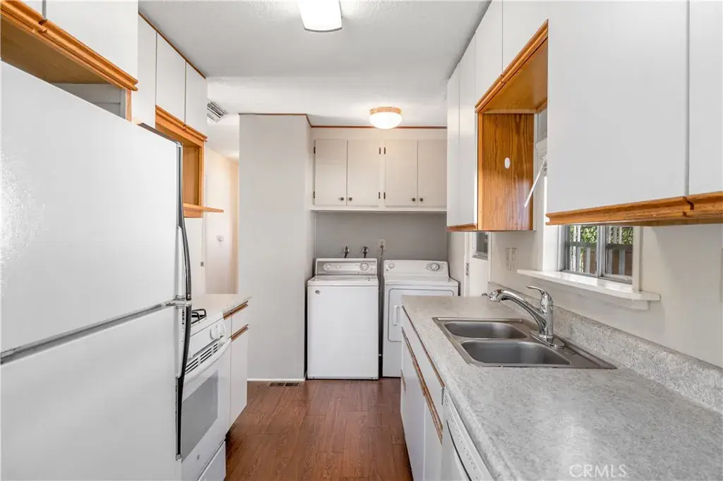 Enjoy the convenience of owned land with no space rent, adding long-term value and affordability. The easy-care backyard landscaping is perfect for relaxed outdoor living without the upkeep.