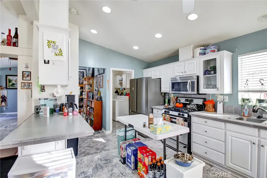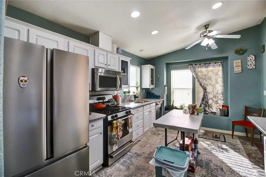 This move-in ready home offers an enclosed 1-car attached garage, perfect for parking, tools, hobbies, and seasonal items. Inside, the bright kitchen features stainless steel appliances, plentiful cabinet space, and a cozy breakfast counter. Stay comfortable year-round with central heat and air, complemented by window shades, blinds throughout, and ceiling fans in the bedrooms, kitchen, and dining area. The washer and dryer are included as an added bonus.