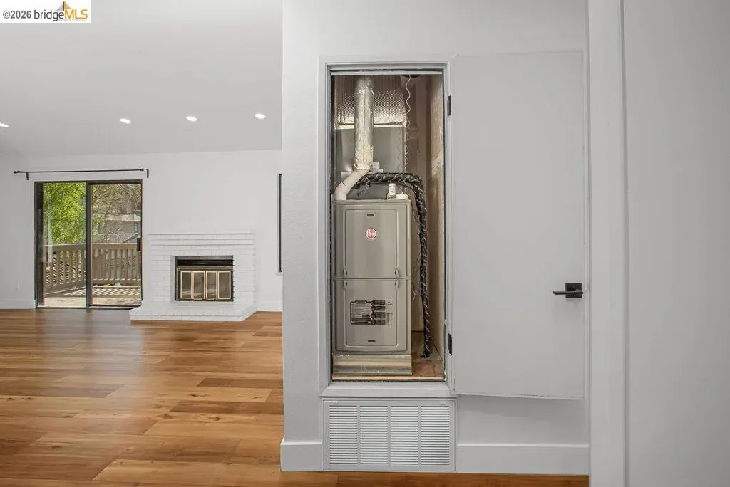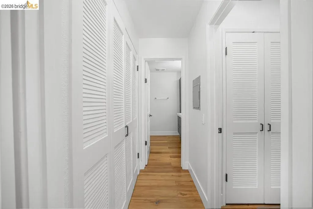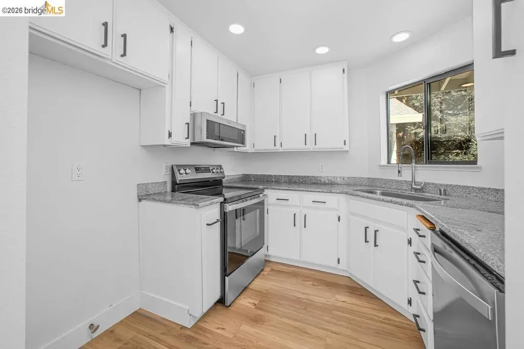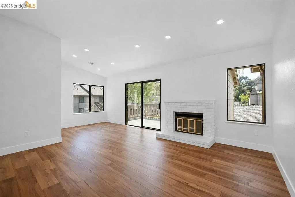 Sun-filled corner 2BD/1BA top floor corner unit with thoughtful upgrades throughout. Interior highlights include engineered wood flooring, smooth ceilings, fresh paint, refinished cabinetry, granite countertops, and stainless steel appliances. The updated bathroom features a dual-sink vanity and walk-in shower, plus smart home features and energy-efficient lighting. Additional perks include central heat and A/C, generous storage including attic space, and HOA-covered water, sewer, and garbage. Conveniently located near WestCAT transit, freeway access, waterfront trails, parks, and shopping, offering easy commuting and access to outdoor recreation. Bright, updated, and well positioned in Hercules. Come see what makes this one stand out.
