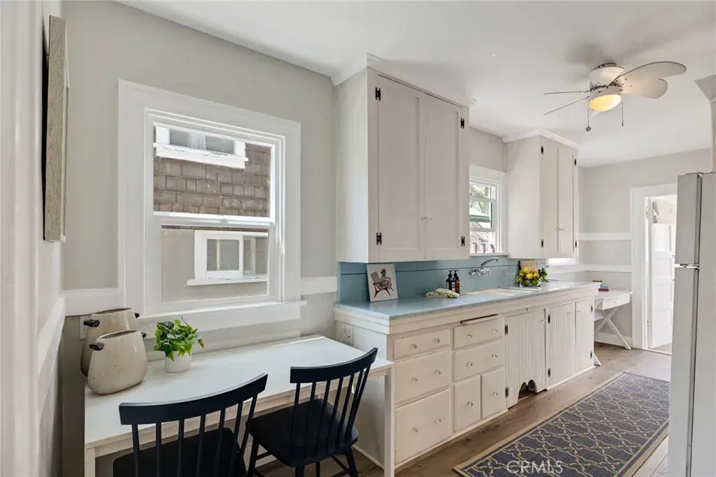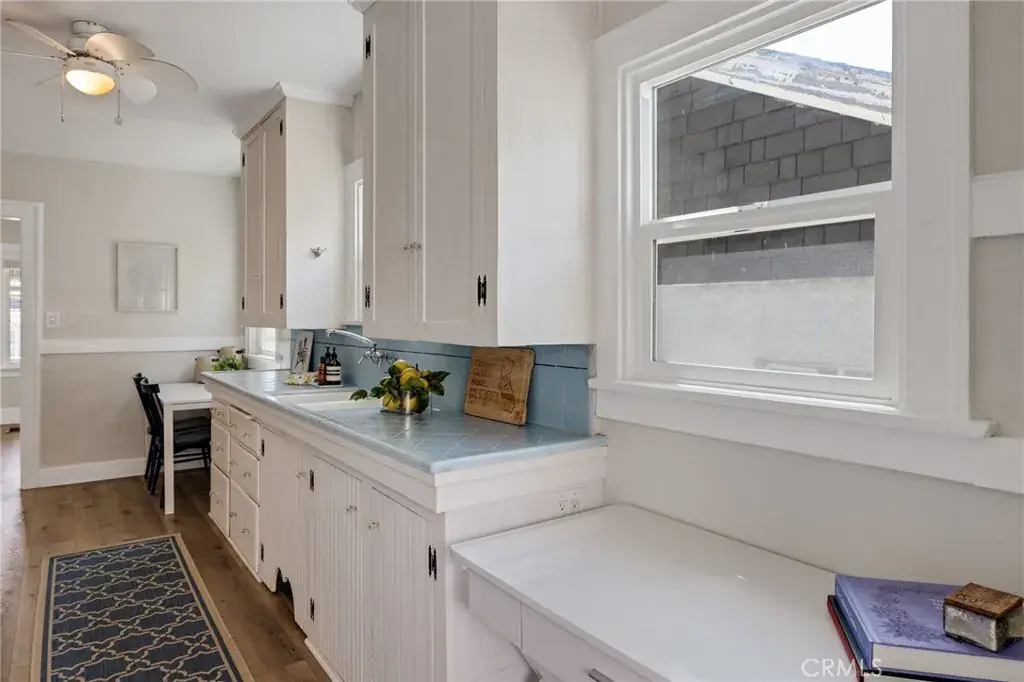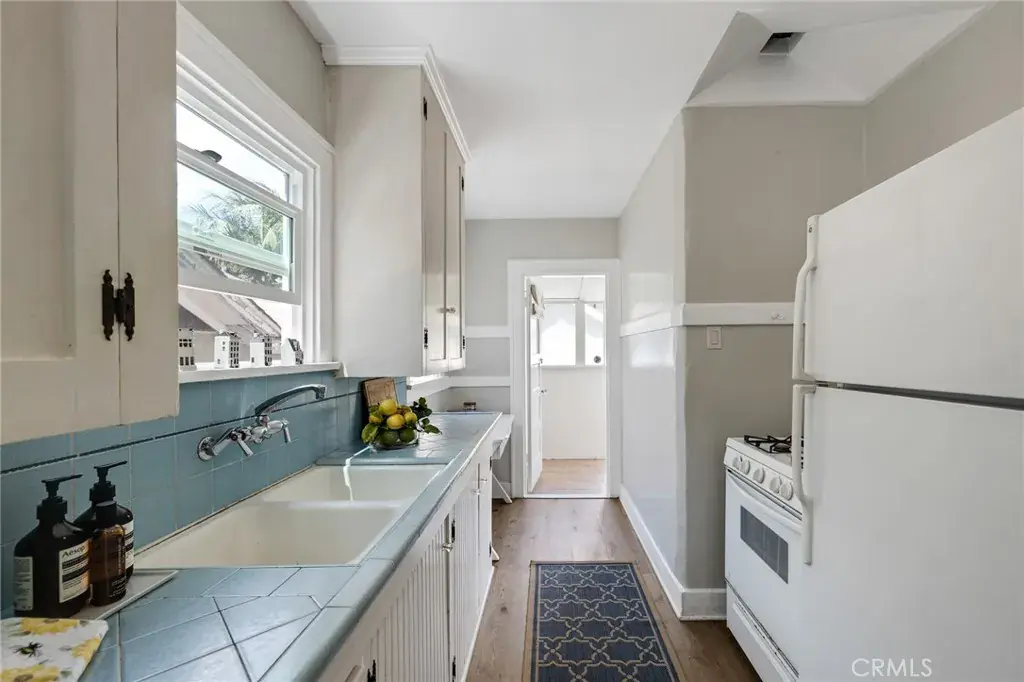 Oh my WOW…You just can’t build a new “100+ year old vintage cottage”, and there aren’t many left. This one is right out of central casting with cuteness overload starting at the ocean view front yard and continuing up the steps and into the ocean view entry/ sun porch/ office, completely flooded with light. Stop right there to dream, write a script, have your morning coffee, and return for sunset cocktails. You’ll want to stay right there, but come inside, you just have to see it all! The spacious living/family room for hanging out or TV watching, is complete with plenty of windows, a storage closet, and gorgeous flooring that extends throughout. Onto the galley kitchen with vintage cabinetry and tile countertops, and space for eating. There’s a main floor bedroom with sunny windows facing the back yard, a nice step-in closet, and right next to the ground floor bathroom with tub/shower and old school tile. Open the door just outside the bathroom and walk up the “secret staircase” to the dreamy second bedroom, with lots of floor and closet space. Come back downstairs, there’s more. Just beyond the kitchen there’s an awesome laundry area which also houses the nearly new water heater. Step out to the back porch and patio to the lush yard. Lots of grassy area and plenty of patio area for parties, BBQ’s, gardening and more. The private/gated back yard is perfect for dogs of all sizes with the convenience of leaving the back door open. Let’s talk about the “garage”. Back in the day Model T’s might have been able to roll up the skinny “driveway” and into the garage. Those days are long gone but the garage structure remains, and is now a great space for storage or hobbies. All of this is located on a quiet one-way west bound street in the coveted Hermosa Hills, within blocks or a mile to shopping, restaurants (Poulet Du Jour, Michelin star breakfast burritos and meals at Barans and more), award winning schools, and of course the beach. Use it for year ’round living, weekends at the beach or whatever you can imagine.”I don’t want a vintage beach cottage” said no one ever! Come see it now, you’ll be glad you did!