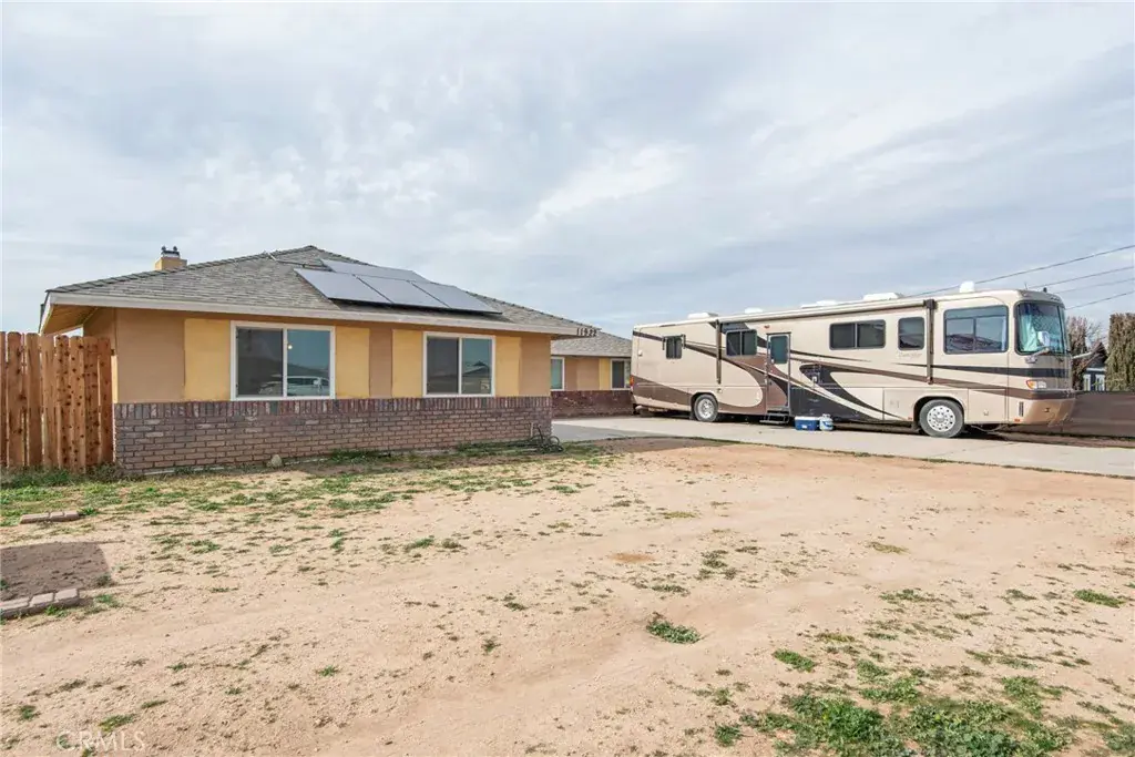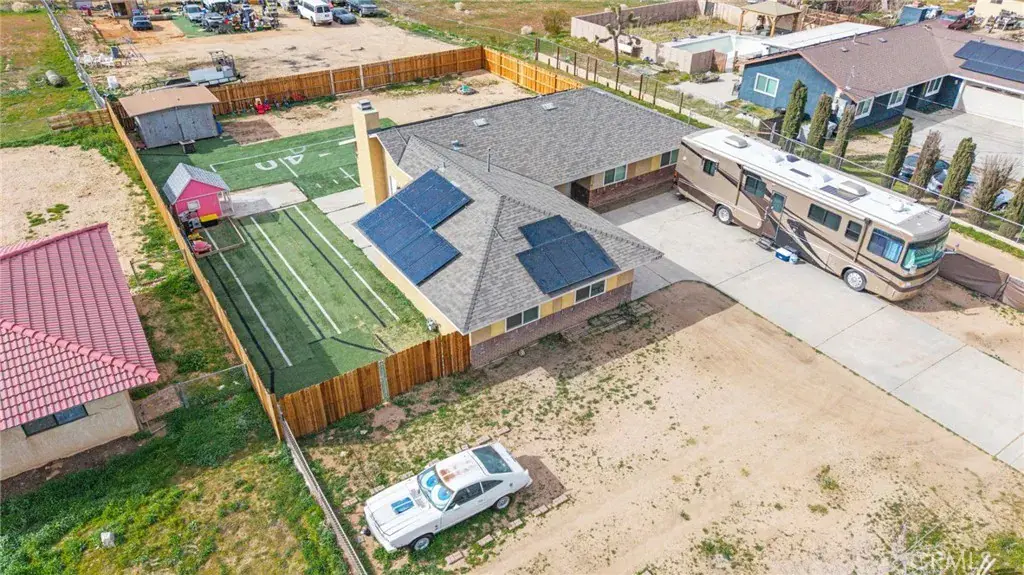 Nestled on a .72 acre in the heart of Hesperia, a true entertainer’s paradise designed for grand living and unforgettable gatherings. With four bedrooms and two bathrooms (One of the bedroom was opened up to the livingroom). Sunset views from your backyard! This cozy residence offers privacy, comfort, and open space throughout the home. The backyard is designed to accommodate large family events and private gatherings. Located in commuter-friendly Hesperia, this home offers quick freeway access, placing you within driving distance to Wrightwood and Big Bear Mountain resorts, as well as Southern California beaches and Los Angeles attractions. Best school districts in the High Desert. Septic has been upgraded with risers flush to the ground for easy inspections and service. RV hook up with 50 amp service. usable graded backyard for all your toys and future projects. Brand new cedar wood fencing with two separate entries. Garage is insulated and epoxy floors. Whether you’re hosting 50 guests or enjoying a quiet evening by the fireplace, this home is truly a perfect entertainer’s dream. Make this home your own.