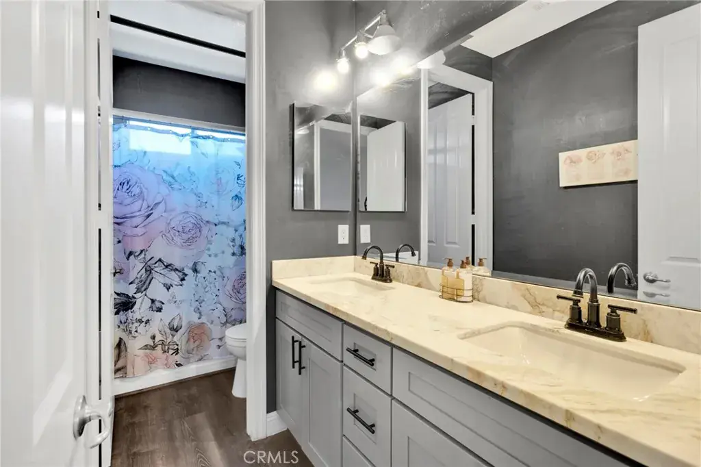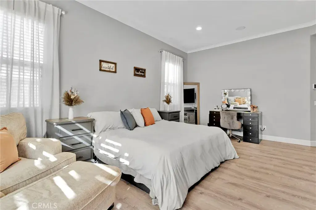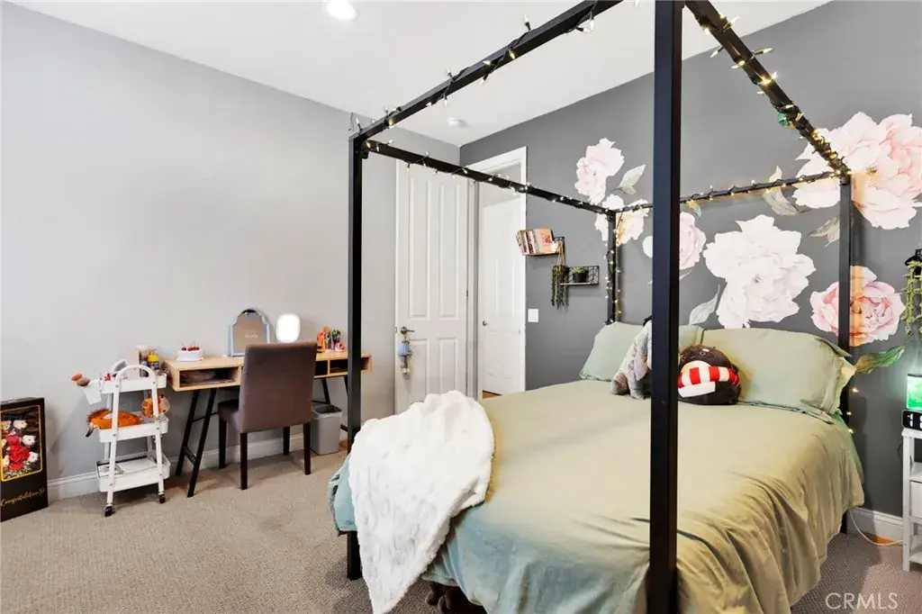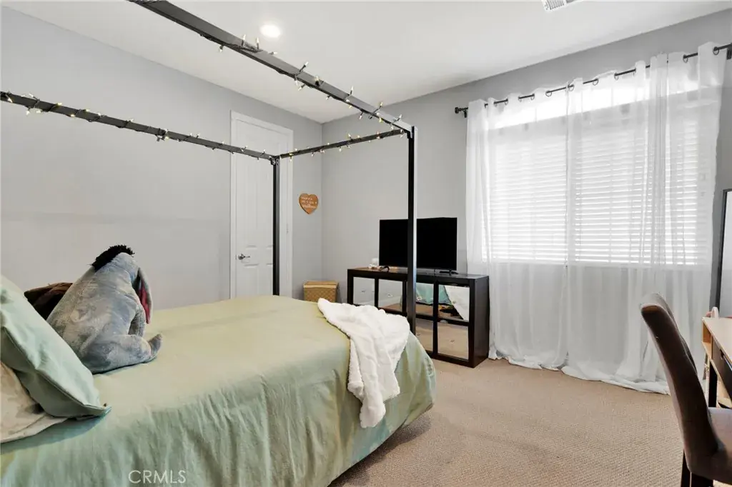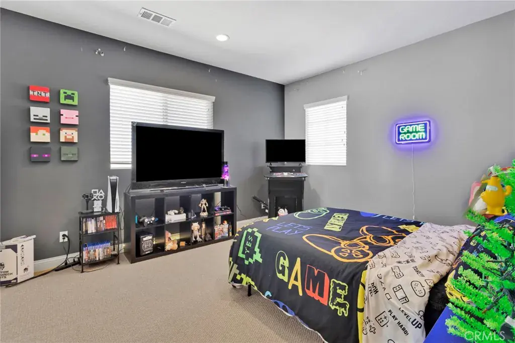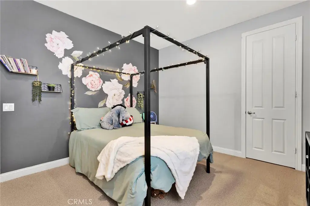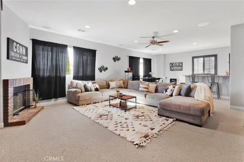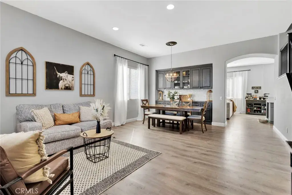 Beautiful 3,317 sq. ft. home featuring 5 bedrooms, 4 bathrooms, and a spacious 3-car garage. The light and bright open floorplan offers generous living areas, neutral finishes, and modern upgrades throughout. The main level includes an inviting dining space with custom built-ins, a comfortable family room, and a well-appointed kitchen with ample storage and seamless access to the backyard. The desirable floorplan features the primary suite downstairs for privacy and convenience, complete with an en-suite bath and walk-in closet. Upstairs you’ll find four additional bedrooms along with a large loft/bonus room complete with a built-in bar area—ideal for entertaining, media, or additional living space. Outdoor living is enhanced by a covered back patio, perfect for year-round enjoyment and gatherings. Additional highlights include the 3-car garage for parking and storage and a solar system for improved energy efficiency and reduced utility costs. Situated in a desirable, commuter-friendly community, this move-in ready home offers the perfect blend of space, function, and modern convenience.