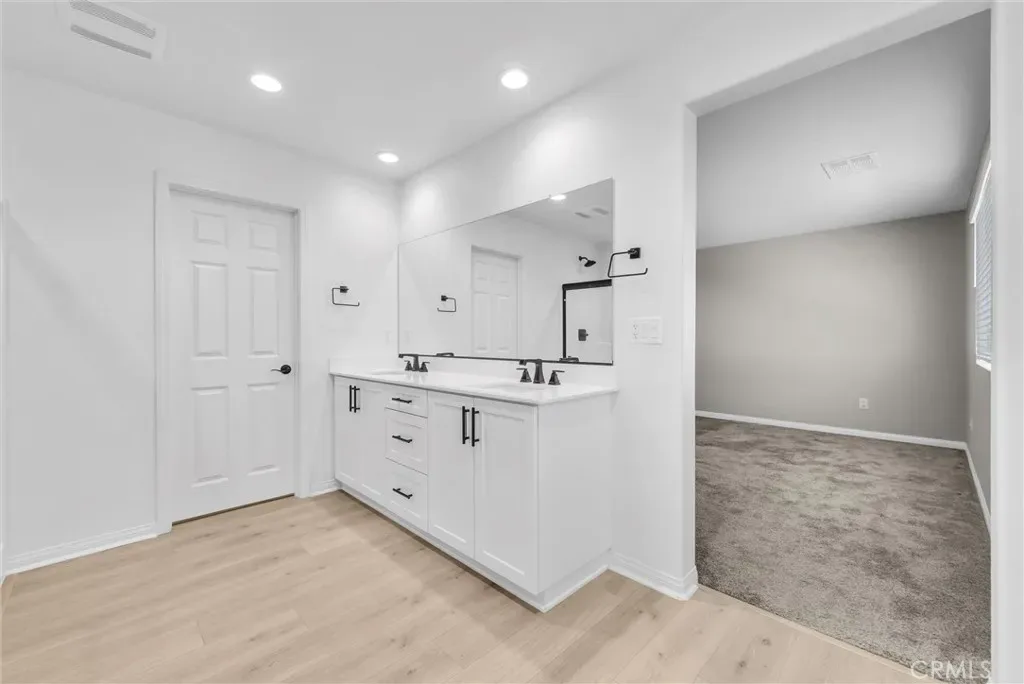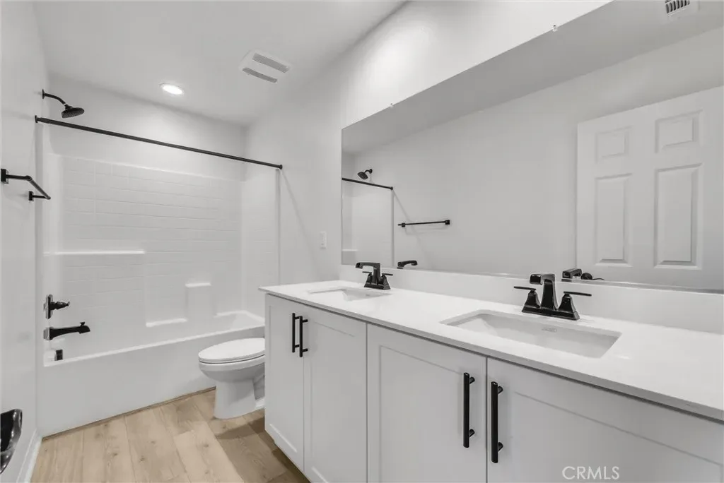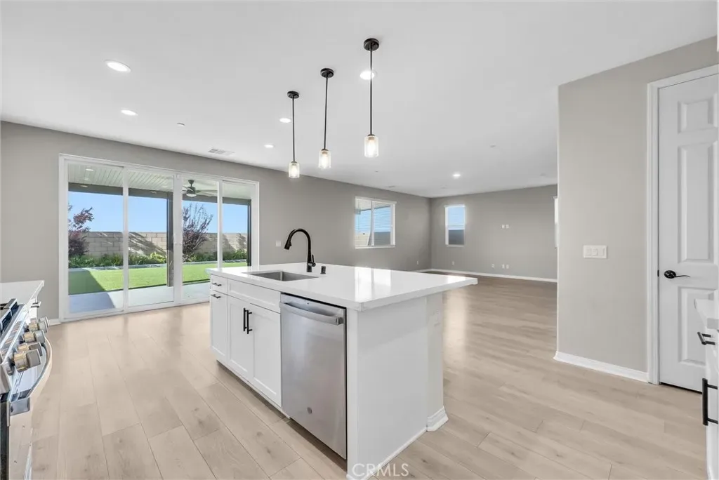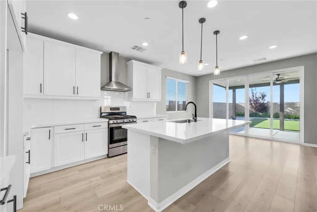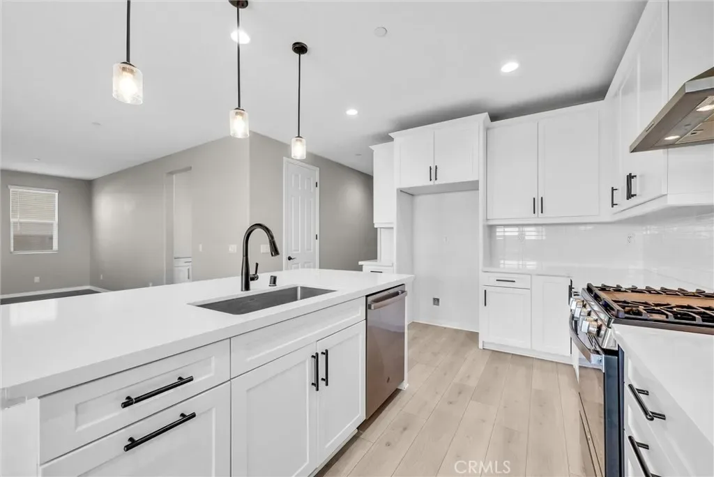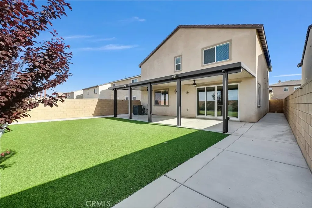 Welcome to this beautifully upgraded 2023-built home in Hesperia, offering 4 bedrooms, 3 bathrooms, and approximately 2,626 sq ft of modern living space. Designed with an open-concept layout, the home features a stylish kitchen with quartz countertops, white shaker cabinets, a large island, and sleek finishes that flow seamlessly into the living and dining areas—perfect for entertaining. The main floor includes a bedroom and full bath ideal for guests or multi-generational living, while upstairs boasts a spacious loft, convenient laundry room, and a generous primary suite with dual vanities and a walk-in closet. Step outside to a private backyard with block wall fencing, covered patio with ceiling fans, and low-maintenance turf. Additional highlights include a 2-car garage, energy-efficient features including solar, and a prime location near schools, parks, and commuter routes.