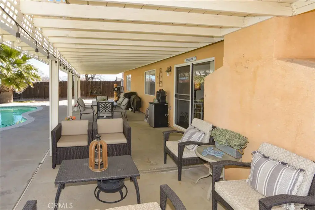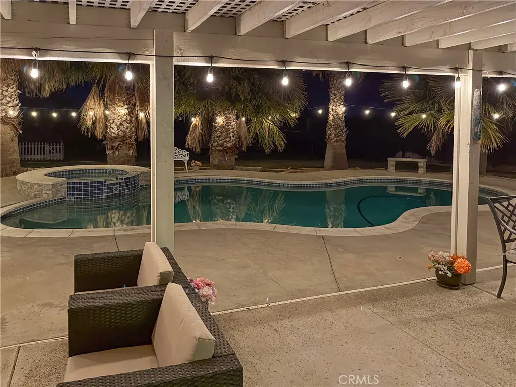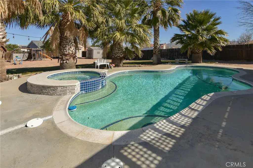 Situated on an approximately 18,000 square foot lot, the backyard includes a private pool and spa, a covered patio for shaded outdoor use, and ample yard space for a variety of needs. The outdoor area is fully enclosed and intended for private enjoyment.