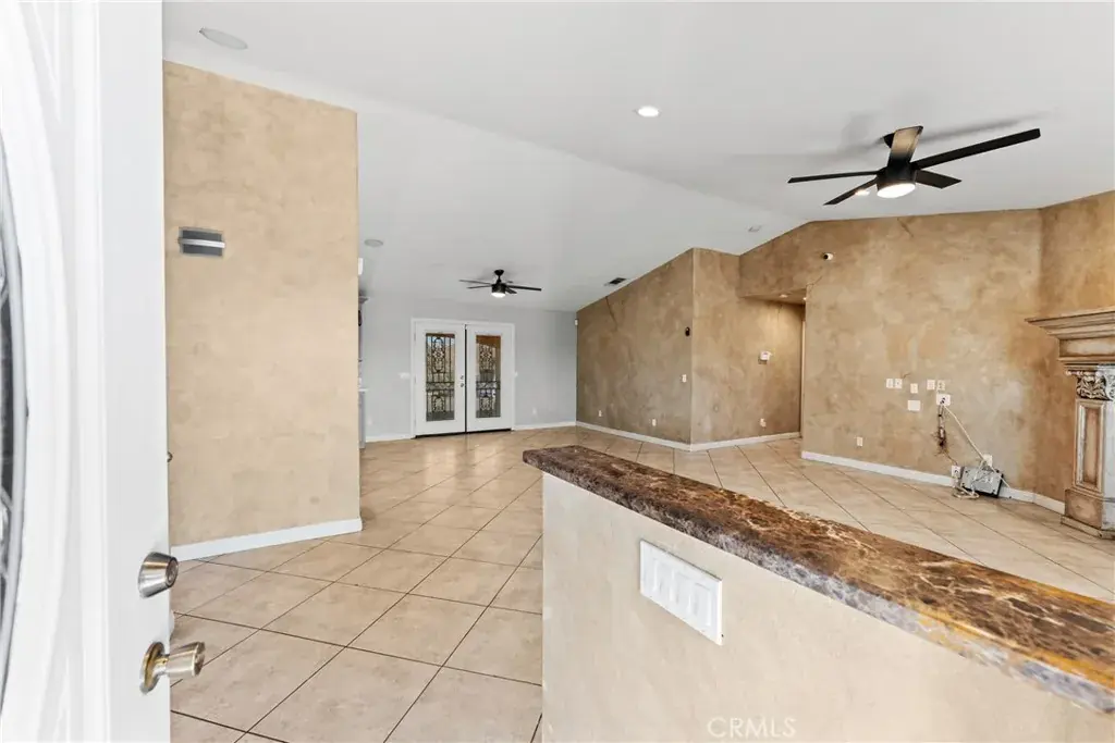 Centrally located Hesperia home situated on a usable 1.4 acre corner lot with remote gate access, offering space, privacy, and flexibility for a variety of uses. This single story ranch style home features a split open floor plan, high ceilings, and 4 bedrooms with 3 bathrooms. Tile flooring runs throughout the main living areas, kitchen, bathrooms, and hallways, creating a clean and cohesive layout. The open floor plan allows the kitchen, dining, and living areas to flow together, making the home ideal for everyday living and entertaining. The kitchen features granite countertops, ample cabinetry, generous counter space, and a center island. The living room includes a fireplace and direct access to the backyard, enhancing the indoor outdoor connection. The primary suite offers a private retreat with an en suite bathroom featuring dual sinks, a separate soaking tub and shower, and a large closet. Secondary bedrooms are well sized and versatile for guests, home office use, or additional living needs. The exterior offers an expansive covered wraparound patio ideal for outdoor living. The fully usable land provides excellent potential for recreation, storage or future improvements. Originally built as a model home, this property includes numerous upgrades throughout and offers a rare combination of space and functionality.