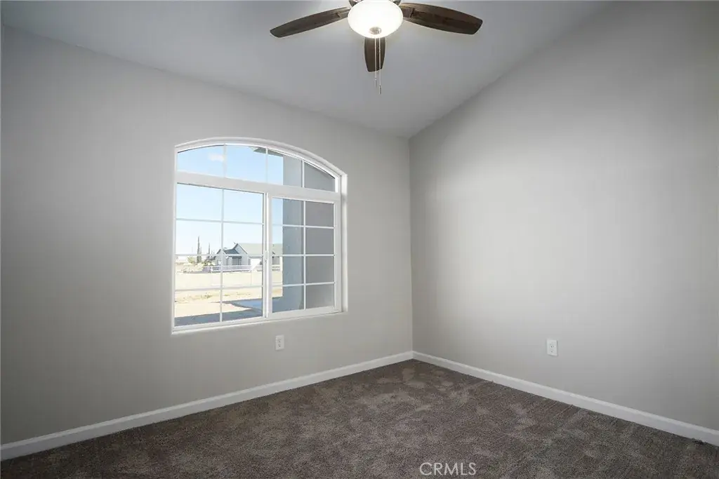 CHECK OUT THIS IMPRESSIVE NEW CONSTRUCTION HOME IN HESPERIA! This home offers approximately 2100 SF of amazing living space. Enjoy your kitchen with solid surface counters, functional cabinets, large pantry, center island and modern appliances. The gathering area is spacious and inviting. The split floorplan offers a comfortable feel with the main bedroom on one side of the house and with a bathroom to include dual sinks, separate tub and shower. The other bedrooms are off the hallway and are adequate in size and share a bathroom. Next to the indoor Laundry is also a half bath that is great for guests. There is a total of 4 Bedrooms and 2 ½ Bathrooms. Also, there is plenty of parking in the 3 car garage. Enjoy the desert weather under the covered patio overlooking a large lot. The property line goes beyond the fencing. Solar panels that are owned are included and installed at the minimum standards. Take a look at this Amazing Home!