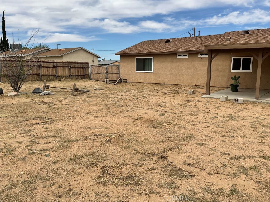 COME ON DOWN!!! TAKE A LOOK AT THIS THREE BEDROOM TWO BATH HOME WITH A YARD THAT IS FULLY FENCED HAS TWO LARGE SIDE FENCES DOOR TO THE BACK TO PUT ALL YOUR TOYS AND A FIRE PIT COME INSIDE WITH TILE AND LAMINATE FLOORING. THE HOME COMES WITH A STOVE, REFRIGERATOR, AND DISHWASHER CEILING FANS IN THE LIVING ROOM. CLOSE TO THE STATER BROS SHOPPING CENTER MINUTES TO HESPERIA LAKE