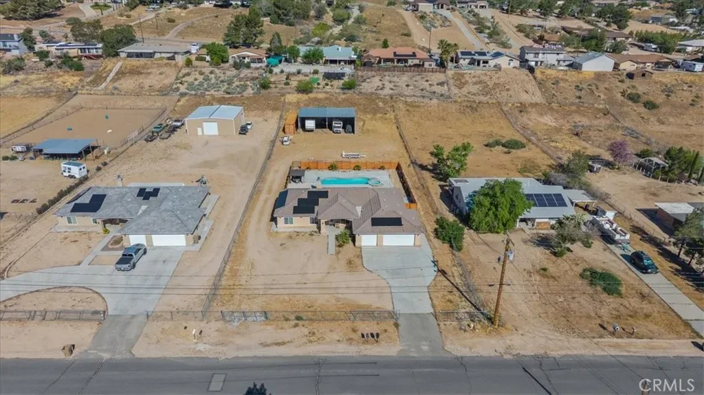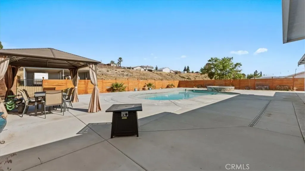 Check out this home on Alston Ave in Hesperia, where style, comfort, and backyard living come together in this beautifully upgraded newer home built in 2016. From the moment you walk through the door, you are greeted by high ceilings, an open airy feel, and a spacious living room anchored by a cozy fireplace, perfect for relaxing or hosting friends and family. The kitchen is truly the heart of the home, featuring a massive island, breakfast bar, walk in pantry, tons of cabinet and counter space, and two dining areas, giving you flexibility for everyday living or entertaining on a larger scale. The split floor plan offers privacy, with a spacious primary suite tucked away, complete with a soaking tub, separate shower, and a large walk in closet, while three additional bedrooms and a guest bath sit on the opposite side of the home. Indoor laundry and a huge three car garage provide all the extra space you need for storage, tools, and toys. Step outside and this is where the home really shines, enjoy your own private backyard retreat with a large covered patio, additional gazebo, and a stunning inground pool and spa with a lagoon step, perfect for those hot summer days. The property is fully usable and cross fenced, with easy RV access and a large RV carport, giving you room for all your extras. Solar helps keep energy costs down so you can enjoy your pool all season long. Located in a desirable Mesa area, this home checks all the boxes for space, function, and lifestyle.