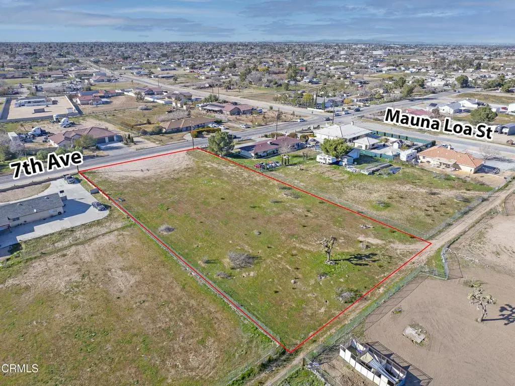 Amazing and rare opportunity in the heart of Hesperia, where 1.09 acres (47,480 square feet) of flat, build-ready land awaits at Seventh Avenue to build your custom, dream single-family home. Most surrounding lots have already been developed. Lot is positioned as the 3rd lot (going south of Mauna Loa St.) on the East side of Seventh Avenue and zoned A1 for ideal flexibility. Utilities are located at street, making connections for water, sewer, electricity, and other services more convenient and cost-effective. With its generous size of over an acre, favorable zoning, and level terrain, this lot is perfect for buyers who want space to spread out and design their dream home with room for landscaping, outdoor amenities, or additional structures. Don’t miss this rare chance to secure prime real estate in a highly desired and established neighborhood of residential homes, in close proximity to shopping, and just 2.5 miles to the 15 freeway (approximately).