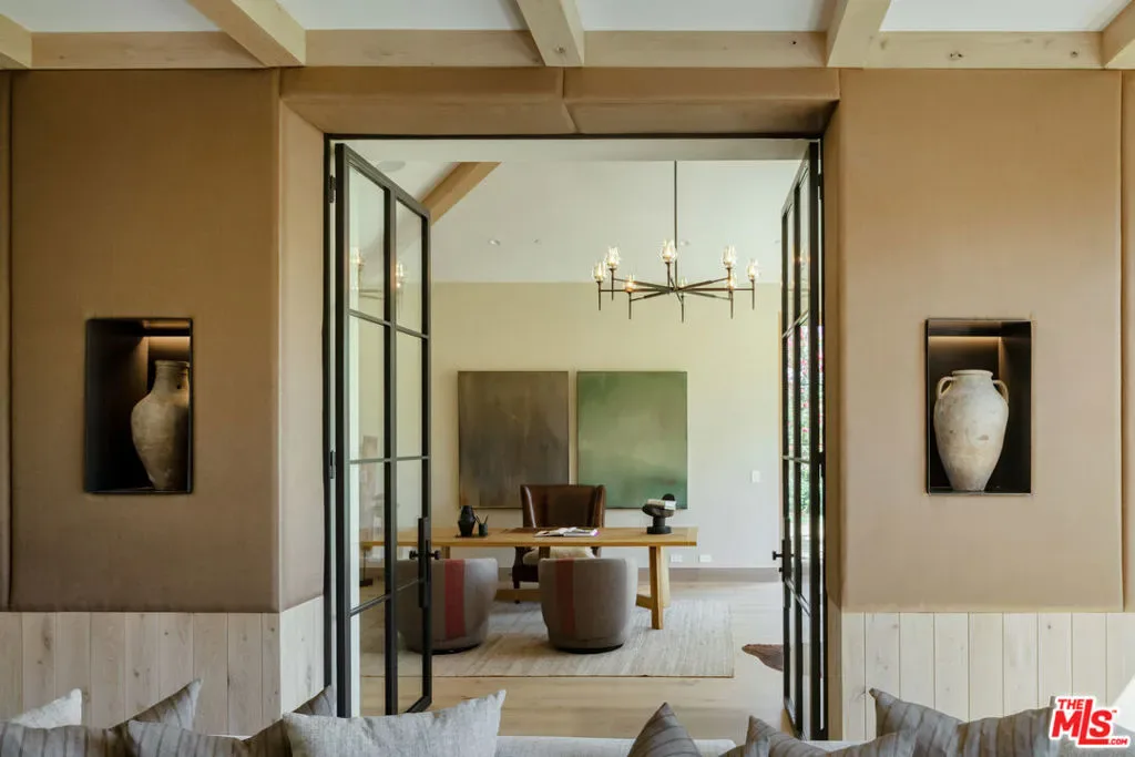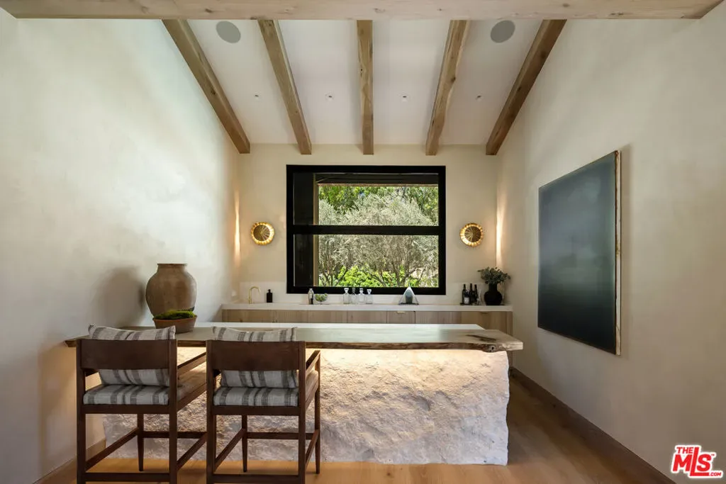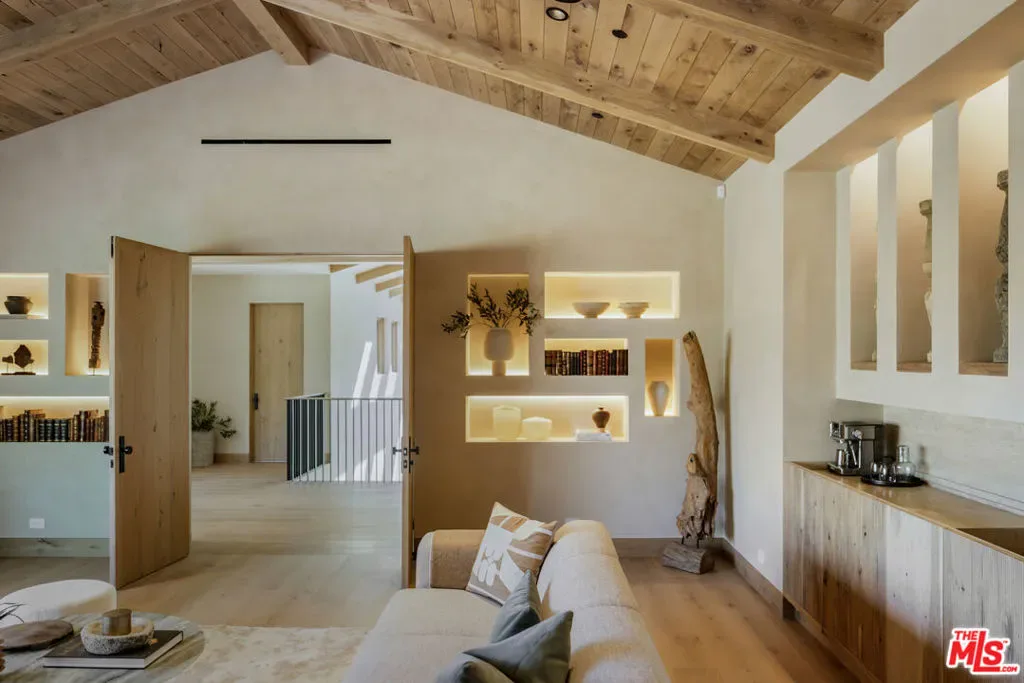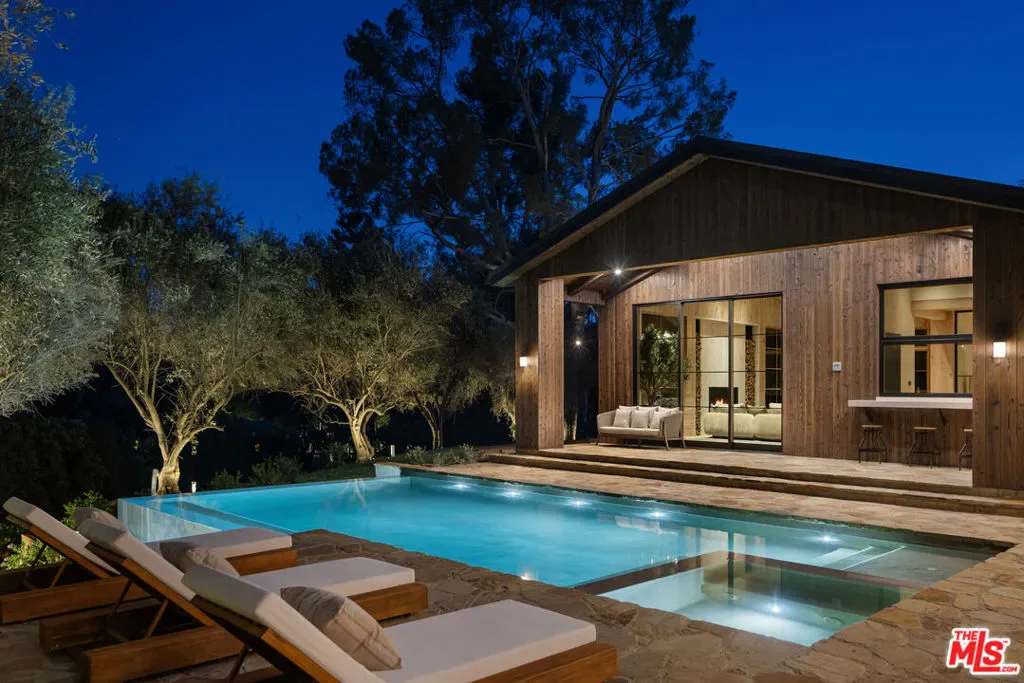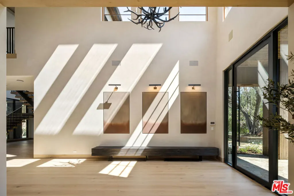 Introducing Three Planes, an extraordinary new 11,000 sq ft modern equestrian estate by acclaimed designer Jae Omar, set on over an acre in the exclusive gates of Hidden Hills. Inspired by the Chumash people and their deep connection to nature, the home is a rare fusion of bold architecture, organic materials, and intentional design. The residence offers 5 bedrooms and 6.5 bathrooms, with the luxurious primary suite and three secondary bedrooms located upstairs, each with its own ensuite bath. A dedicated wellness and entertainment wing features a gym, private spa, media room, wine cellar, and wet bar. The chef’s kitchen with breakfast nook and walk-in pantry flows effortlessly to grand living and dining spaces under soaring, beamed ceilings. Outdoors, discover a resort-style pool and spa, firepit, outdoor kitchen, yoga deck, and a detached barn perfectly honoring Hidden Hills’ equestrian heritage. Every detail is crafted to inspire, making Three Planes as much an artistic statement as it is a private sanctuary.