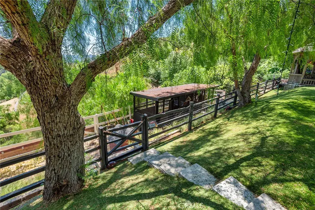 Sited at the very end of a private drive, and nestled on a quiet knoll, this beautiful modern farmhouse is highlighted by the lushly landscaped and serene 3-acre lot that features sweeping pastoral and city lights views. Model sharp throughout, amenities include a chef’s gourmet kitchen, a spacious family room with huge picture windows that showcase the stunning grounds, a casual living room with volume ceilings & lounge area with wet bar, a custom office, and five, sunlight filled bedrooms, including the generous primary suite with all stone bath, oversize closet, and a big view balcony overlooking the scenic vistas. The lush, verdant grounds are highlighted by a sparkling pool & spa nestled against a backdrop of mature trees, a covered patio with an adjoining barbecue center, and gentle walking paths to your own, farm to table garden area, plus a chicken coop, bocce ball court, and various destination areas to simply relax, take in the scenic natural beauty, and soak up the views. This home truly offers the seamless, indoor-outdoor living experience that is so sought after today. With it’s prime location within Hidden Hills, and close to nearby shopping and the highly rated area schools, this one-of-a-kind home and property has much to offer. (See the floor plan included with the photos as provided by CubiCasa).