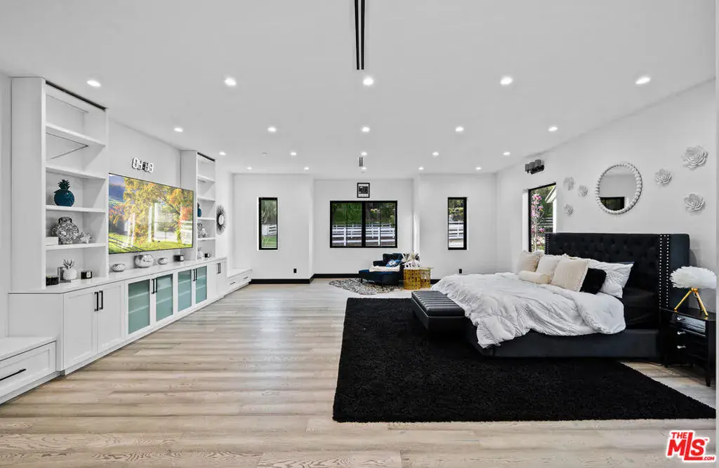 AUCTION BIDDING OPEN! Bidding ends on Wednesday, February 18th. Previously Listed $9,500,000. Current High Bid $5,000,000. Private Showings by Appointment. A rare modern ranch estate awaits in the prestigious 24-hour guard-gated enclave of Hidden Hills, where Southern California’s most sought-after equestrian lifestyle meets contemporary luxury. This exceptional 2.1-acre property seamlessly blends sophisticated design with resort-caliber amenities, offering unparalleled privacy within minutes of world-class dining, entertainment, and outdoor recreation. Built in 2021, the residence boasts soaring ceilings, designer finishes, and walls of glass that seamlessly dissolve the boundaries between indoor and outdoor living spaces. Beyond the main residence, discover a fully equipped guest house, a professional three-stall barn with a tack room, a regulation basketball court, and a standalone gym. The resort-style grounds feature a sparkling pool and spa, an outdoor kitchen, and expansive lawns ideal for recreation. With access to Hidden Hills’ exclusive community amenities and proximity to the Santa Monica Mountains, Malibu beaches, and premier Calabasas shopping and dining, this estate represents the pinnacle of refined California living.
