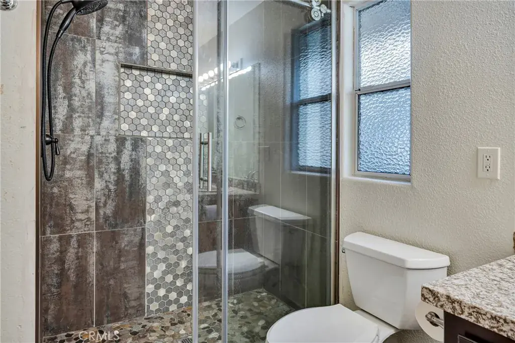 Two additional bedrooms offer flexibility for guests, family, or a home office. The updated guest bathroom also includes a granite countertop and tiled walk-in shower.