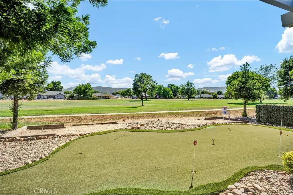 HUGE REDUCTION!! PRICED TO SELL! Situated on the 3rd Fairway at Hidden Valley Lake’s Championship Golf Course, this 3 bed / 2 bath single level home offers 1,807 SF of spacious living space. Beautiful stucco home with new exterior paint and low maintenance landscaping will catch your eye from the road. Large level driveway with plenty of room for parking + a 3 car garage for your vehicles, golf cart or storage! The tiled entry leads to the spacious living room with vaulted ceilings and new vinyl plank flooring. Stately propane fireplace with brick hearth is a nice focal point in the space. The kitchen is open to the living room with a center island, tiled countertops and loads of storage cabinetry. Dine at the breakfast bar, dining nook or formal dining room off the entry. Desirable separation floorplan with 2 guest bedrooms & bathroom on one end with primary and full laundry room with utility sink on the other. Access the back patio from the living room or the primary bedroom. The views from the covered patio of lush green grass year round with surrounding hills in the distance will never get old! Up for some competition? A custom 9 hole putting green with fringe for chipping or the built-in horseshoe pit provides endless outdoor entertainment! The primary bedroom has plush carpet, a ceiling fan and an ensuite bathroom with large walk-in closet + built-ins, new vinyl plank flooring, large walk-in shower, soaking tub and dual sink vanity. This well maintained home shows pride of ownership, add it to your list today!