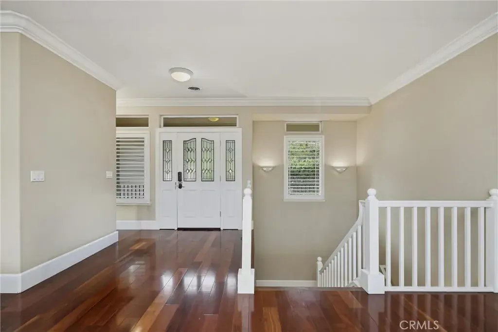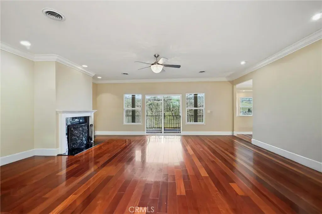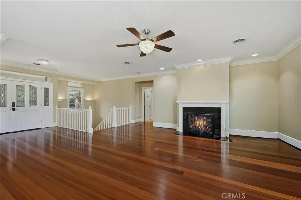 Step through the glass front door and into a light-filled interior featuring Brazilian cherry hardwood floors, soaring 10-foot ceilings, and detailed crown molding. The main living area features a cozy fireplace, recessed lighting, and direct access to the covered back deck, creating a warm, inviting space for everyday living and entertaining.