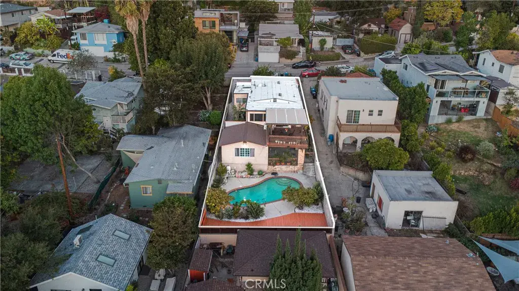 This beautifully upgraded Highland Park retreat offers the perfect blend of charm, sophistication, and resort-style living. Designed for seamless indoor-outdoor flow, it features an updated kitchen with granite countertops, ample cabinetry, and beautiful wood floors throughout the main level. Step outside onto the expansive patio balcony deck and take in breathtaking panoramic views overlooking your sparkling pool and spacious lower deck area—ideal for entertaining or relaxing under the stars. Two inviting patio decks provide endless opportunities for al fresco dining and gatherings, while lush landscaping and mature fruit trees create a tranquil, sun-drenched backdrop that enhances the home’s natural beauty. On the lower level, discover a lush courtyard framed by an orchid tree and garden, creating a serene retreat that leads to a versatile space with private access from the side and rear of the home—offering excellent ADU potential for guests, a studio, or rental income. A separate detached bonus room with its own bathroom and a rare California basement provide additional room for storage, recreation, or creative use. The front driveway accommodates two cars comfortably, adding convenience to this entertainer’s haven. Experience the best of Highland Park living—where timeless charm meets modern luxury—in an unbeatable location close to Downtown LA’s energy, neighborhood hotspots, and easy commuter access to the rest of the city.