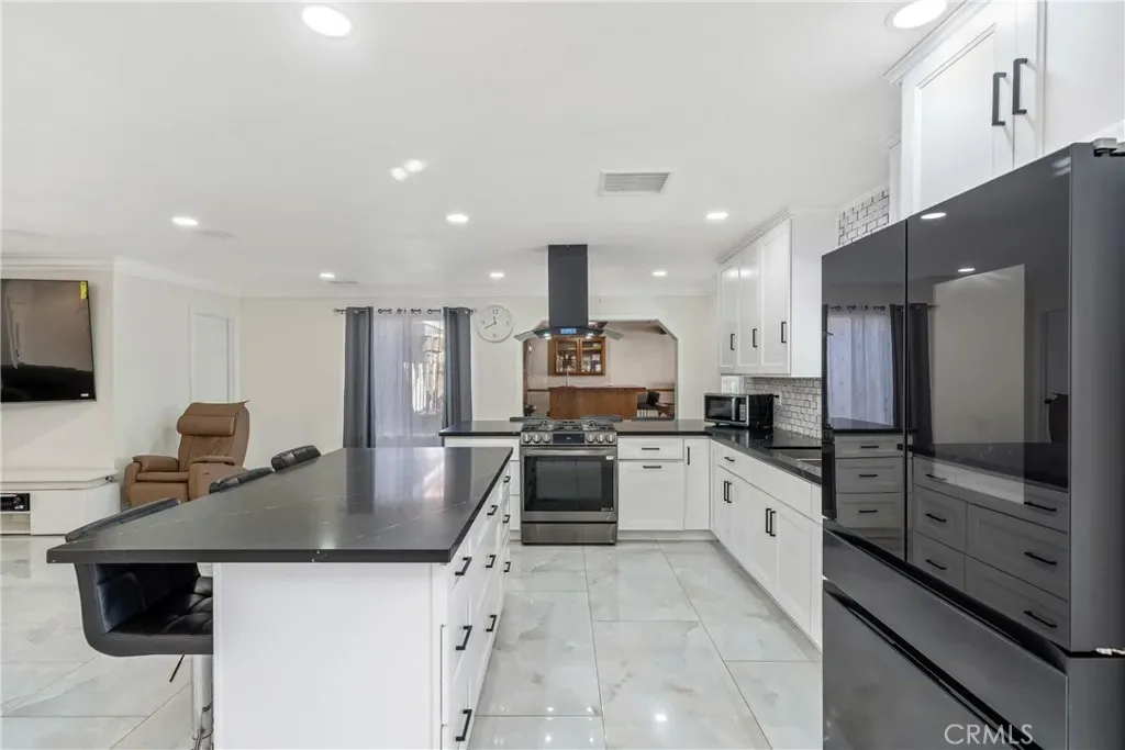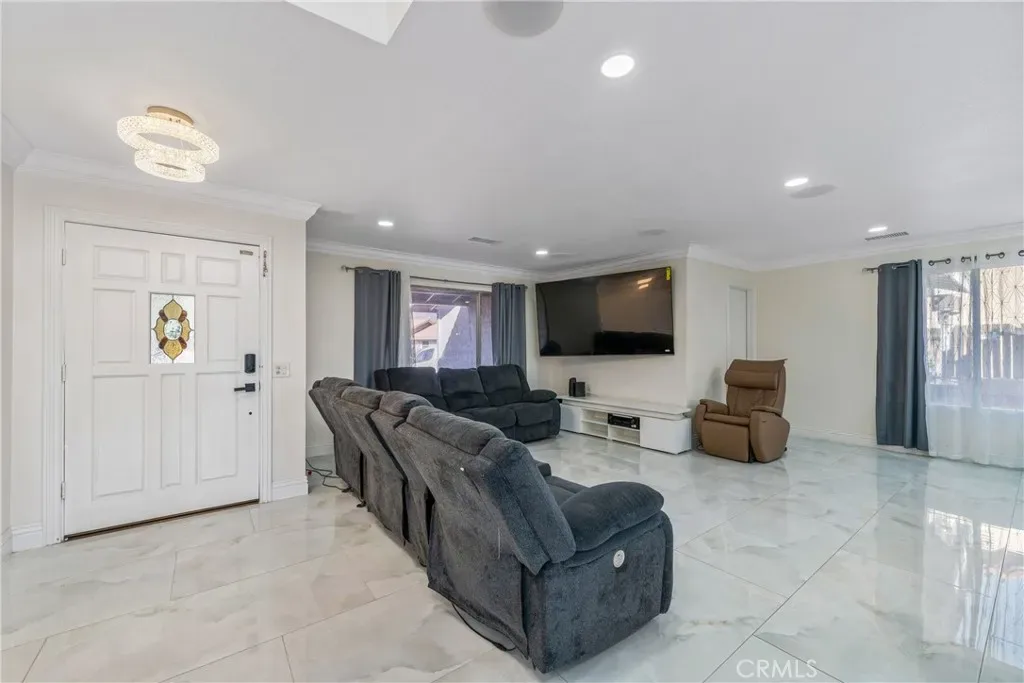 Stunning upgraded home in the desirable city of Highland offering space, style, and privacy! Situated on an expansive lot of over 11,000 square feet, this beautiful residence features four spacious bedrooms and a thoughtfully designed floor plan with a generous family living area—perfect for relaxing or entertaining. Step inside to enjoy elegant porcelain flooring, abundant natural light, and a variety of recent upgrades throughout, creating a modern, move-in-ready feel with seamless flow between living spaces. The beautifully remodeled kitchen showcases white shaker cabinetry, quartz countertops, designer backsplash, stainless steel appliances, and a large center island with bar seating, opening effortlessly to the bright living and dining areas. Sliding glass doors lead to a covered patio and private sparkling pool, ideal for indoor-outdoor living, entertaining, or enjoying the peaceful surroundings. Pleasant city views further enhance the home’s charm and appeal, while solar panels provide energy efficiency and help reduce monthly utility costs. Located in a quiet cul-de-sac, this home offers added privacy while remaining conveniently close to local dining, shopping, and community parks. Plus, you’re just about one mile from Yaamava’ Resort & Casino, offering world-class entertainment, dining, and nightlife.