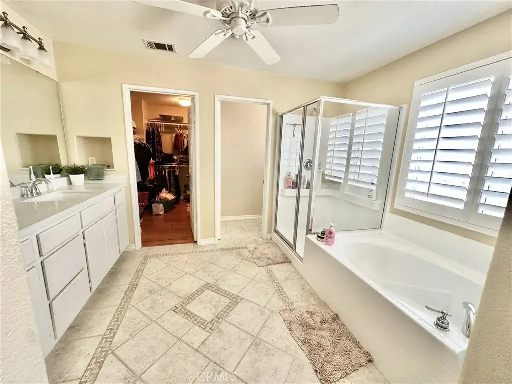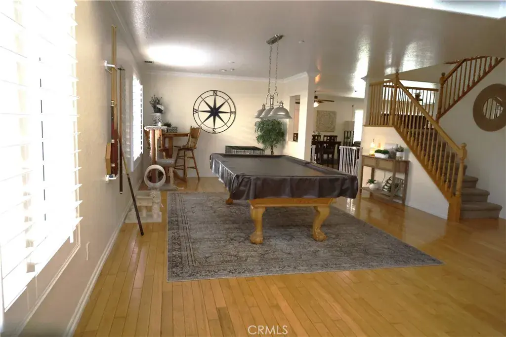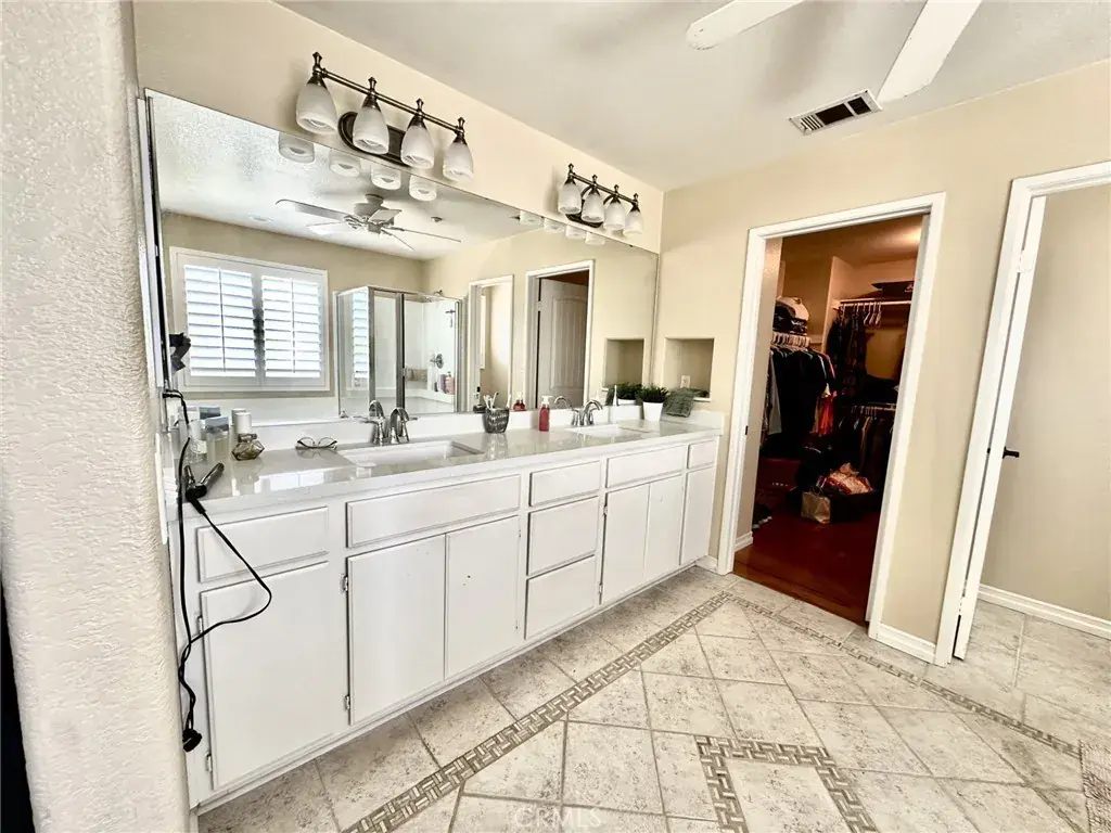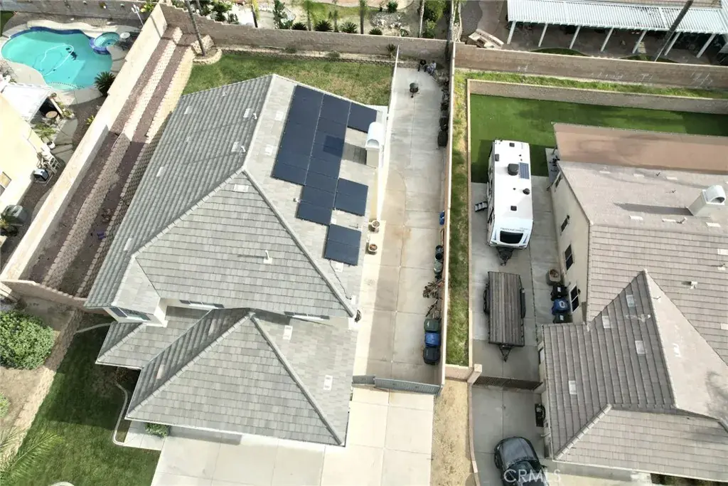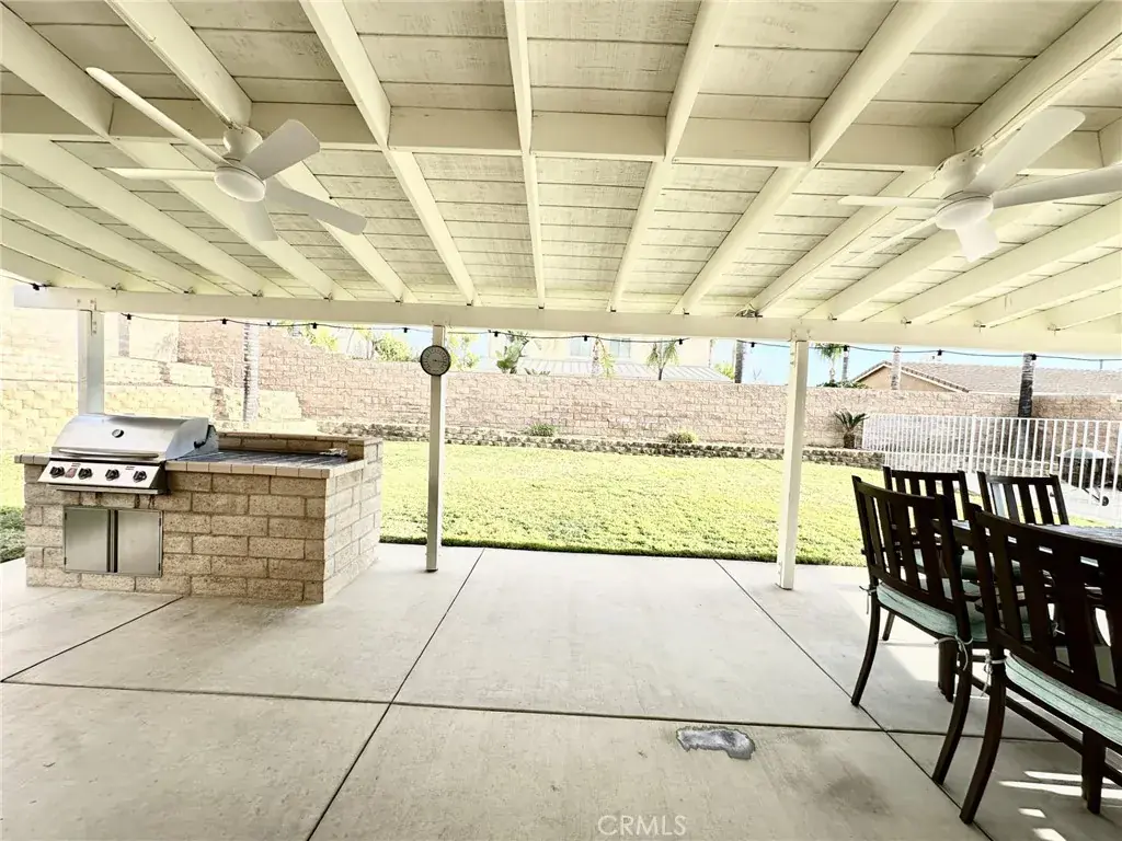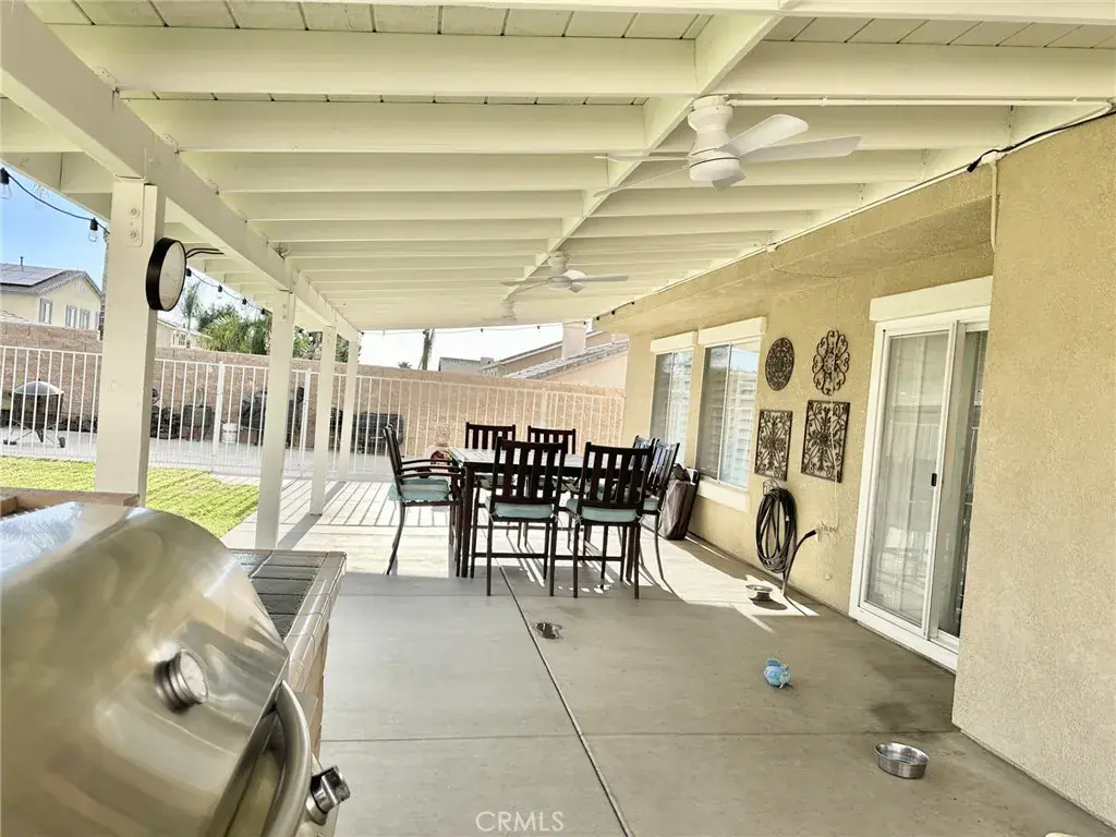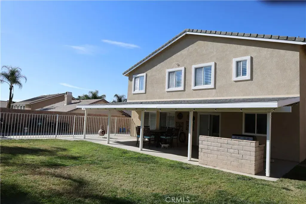 WELCOME TO VENTANA ENTRADA, THIS 4 BEDROOM, 2 1/2 BATH HOME LOCATED IN THE HIGHLY SOUGHT AFTER COMMUNITY OF EAST HIGHLAND WHERE THERE IS NO HOA!! PERFECT FOR THE CAR ENTHUSIAST FEATURING A 4 CAR ATTACHED GARAGE, ONE IS TANDEM. GIVING PLENTY OF SPACE FOR ALL YOUR CARS AND TOYS AS WELL AS A FULLY GATED RV PARKING AREA. KITCHEN HAS BEEN FULLY REMODELED WITH RECESSED LIGHTING, WHITE CABINETRY, KITCHEN AID APPLIANCES, ELEGANT DOOR HANDLES, GRAY ISLAND WITH BEAUTIFUL GRANITE COUNTERTOP AND AN ELECTRICAL OUTLET AND CLEAR GLASS DROP DOWN ISLAND LIGHTING, GRANITE ROCK COUNTERTOP AND DECORATIVE BACKSPLASH, BUILT-IN MICROWAVE HOOD VENT, FAMILY STYLE LARGE PLANTATION SINK WITH SPIRAL FAUCET. DESIGNER TILE FLOORING IN THE KITCHEN AND ALL WOOD FLOORING THROUGHOUT. GAS BURNING FIREPLACE IN LIVING ROOM, PLANTATION WHITE SHUTTERS THROUGHOUT. UPSTAIRS YOU WILL ENTER A SPACIOUS LOFT FOR YOUR UPSTAIRS FAMILY GATHERINGS. LEADING TO A VERY LARGE PRIMARY WITH A NEW GLASS ENCLOSURE AND NEW GLASS SHOWER DOOR AND NEW MARBLE COUNTERTOP. THE HALL BATHROOM HAS BEEN FULLY REMODELED WITH DUAL SINKS, GRANITE COUNTERTOP WHITE TILE BACKSPLASH AND ELEGANT LIGHTING AND MIRRORS AND TILE FLOORING. CEILING FANS ARE IN EVERY BEDROOM AND DUAL AC UNITS. BACKYARD IS PERFECT FOR ALL YOUR FAMILY GATHERINGS FEATURING A COVERED CONCRETE PATIO THAT IS 16 FEET BY 42 FEET, BUILT IN BARBEQUE ISLAND, CEILING FANS, AND A BLOCK WALL FOR YOUR PRIVACY. SOLAR IS PURCHASED WITH AN ASSUMABLE LOAN