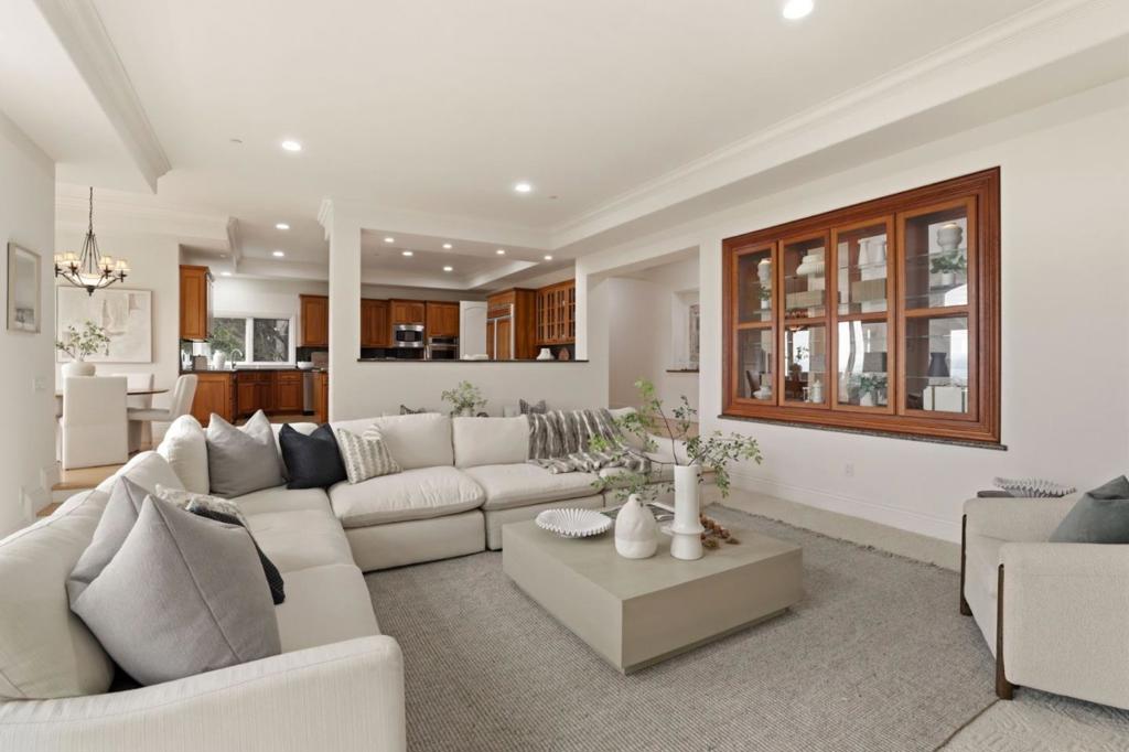 Highly sought after property in the Tobin Clark Estate neighborhood, this property offers expansive, panoramic views overlooking the San Francisco Bay and Peninsula. Spanning over 6500 sq ft, this impressive east-facing residence offers 5 bedrooms, 5.5 bathrooms with a bonus media room, combining scale, elegance, and everyday functionality. A grand foyer welcomes you into the formal living and dining rooms, creating an immediate sense of sophistication. The main level’s great room seamlessly integrates the kitchen and family room in an open-concept layout ideal for modern living, while a versatile flex room nearby enclosed by double french doors offers the perfect space for a playroom, secondary family room, office, or private gym. Panoramic bay views can be enjoyed from the kitchen, family room, formal living room, stairway, and primary suite. The expansive updated upstairs primary bedroom features multiple sitting areas and a private balcony showcasing some of the home’s most breathtaking views of the Peninsula and water. A gated driveway leads to a spacious three-car garage with additional guest parking, offering both privacy and convenience.