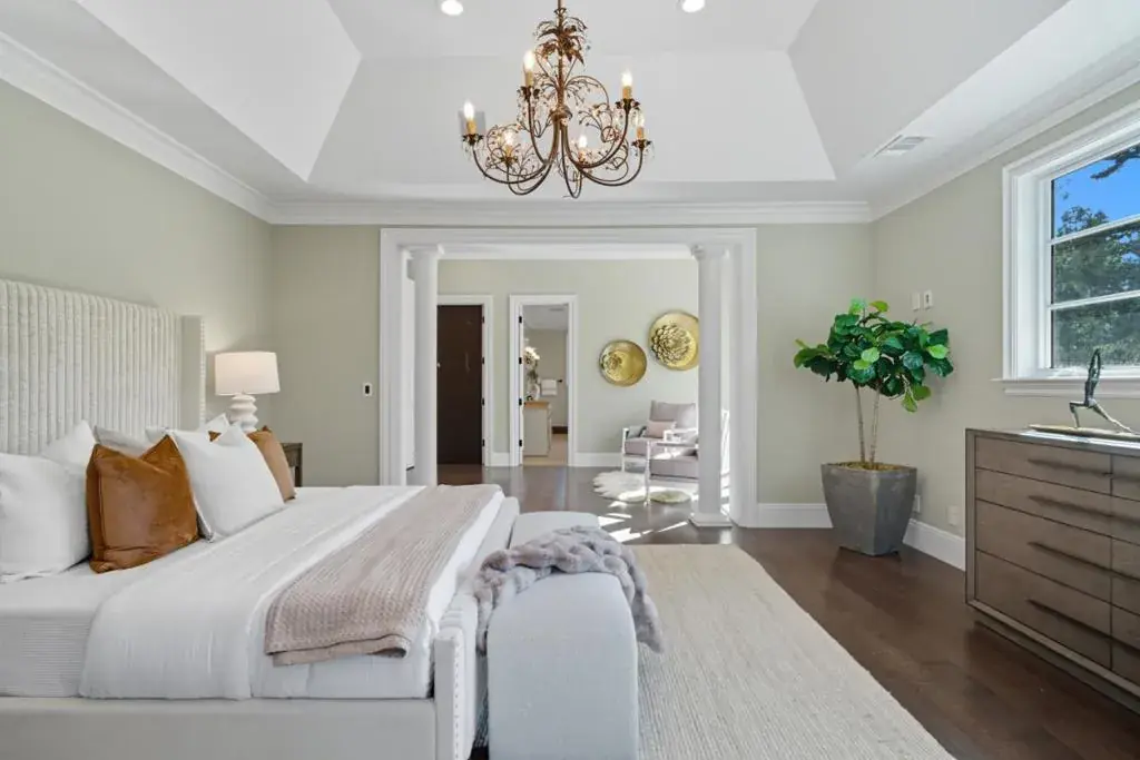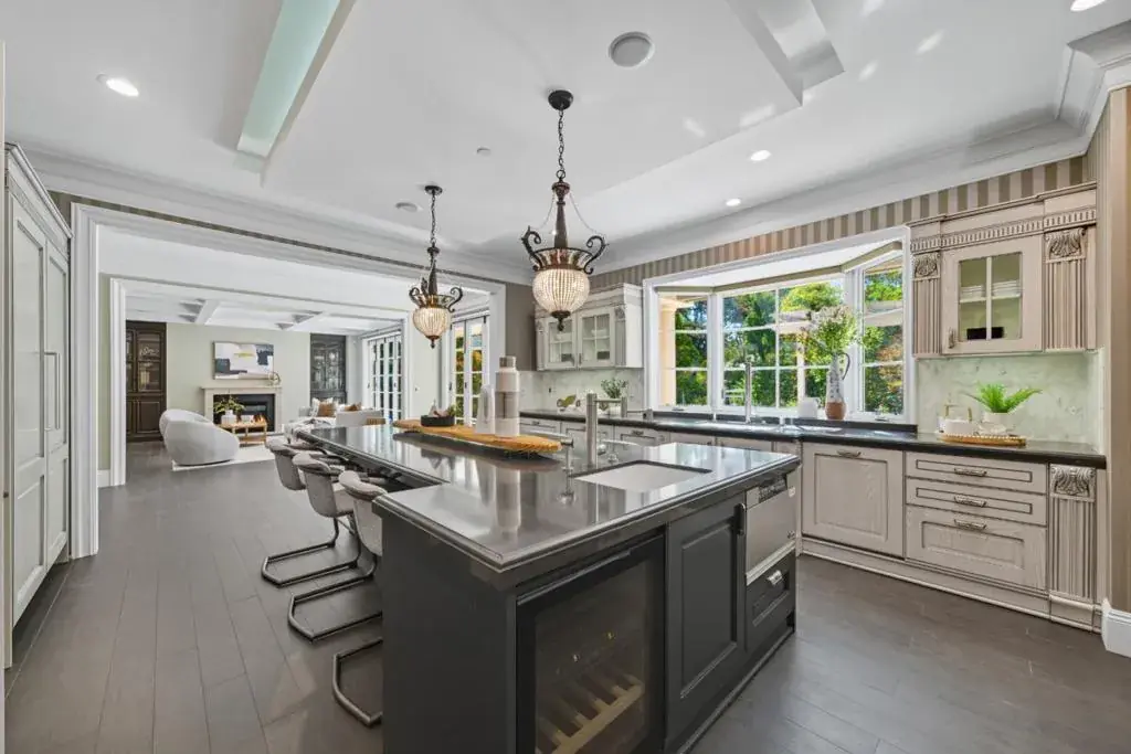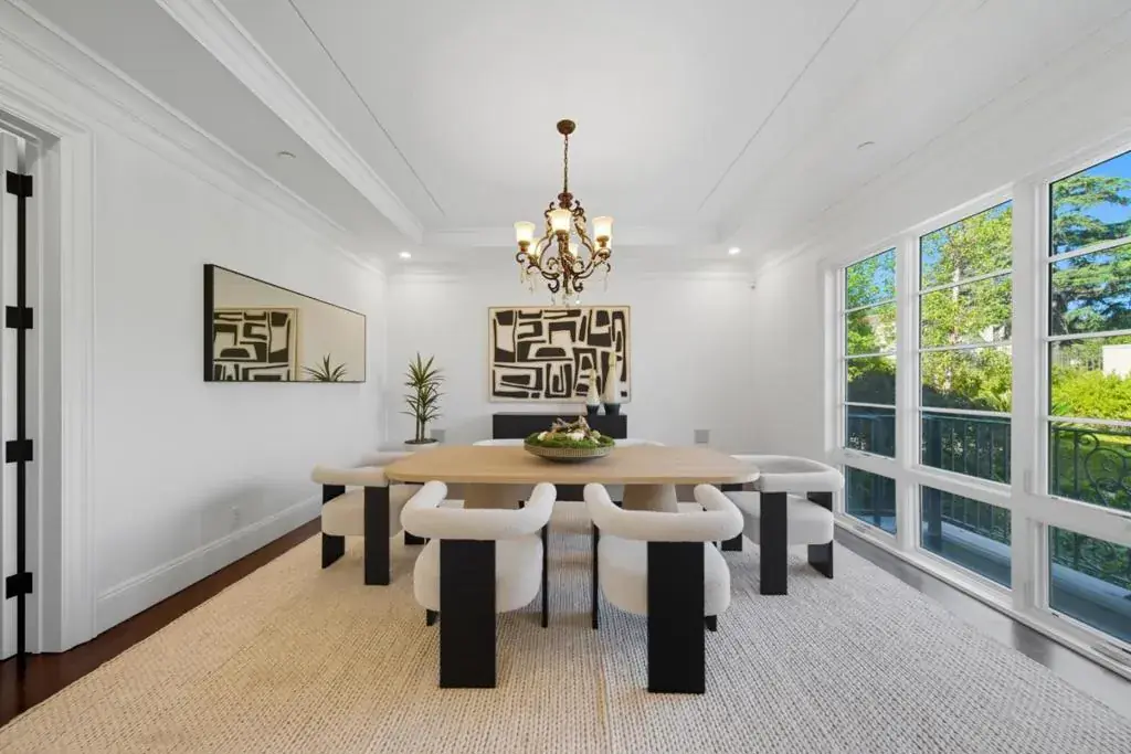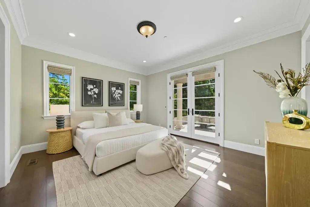 This beautifully designed 5-bedroom, 5 full and 2 half-bath home blends timeless sophistication with modern comfort in one of Hillsboroughs most sought-after neighborhoods. A grand two-story foyer welcomes you in, leading to formal living and dining rooms perfect for entertaining. A private guest suite on the main level adds flexibility, while a butlers pantry hallway and separate walk-in pantry provide smart, functional storage. The expansive great room unites the family area, breakfast nook, and chefs kitchen, opening through folding glass doors to a spacious deck with a tranquil fountain and outdoor fireplaceideal for indoor-outdoor living. Downstairs, a media room with wet bar, temperature-controlled wine cellar, full bath, and additional bedroom offer space to relax and unwind. Upstairs, the luxurious primary suite features a sitting area, two walk-in closets, and a sunlit balcony. Two additional en-suite bedrooms and a handsome wood-paneled office complete the home. Premium finishes include motorized Hunter Douglas blinds and outdoor privacy screens and a full Savant Smart Home System for effortless control of lighting, climate, media, and music.