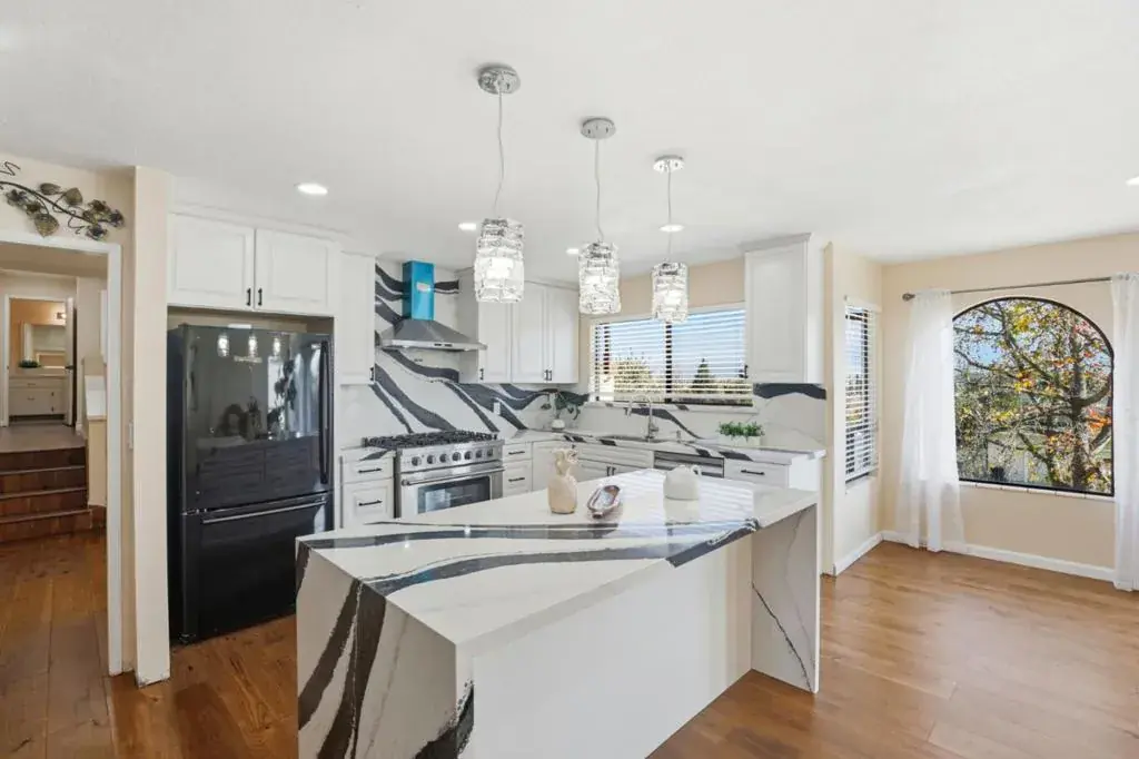 Enjoy breathtaking hillside views from this one-of-a-kind home that perfectly blends Spanish-style charm with modern upgrades, located in the desirable Ridgemark Golf Community. Architectural details include arched windows, a classic plaster fireplace, and newer flooring throughout. The remodeled kitchen features marble countertops, recessed lighting, and newer stainless steel appliances, including a six-burner range with pot-filler hookup, ideal for any home chef. A separate dining room opens to a spacious backyard with a Spanish-tiled patio, creating a seamless indoor-outdoor flow perfect for entertaining. The upstairs primary suite offers a private bathroom and an expansive deck, ideal for enjoying sunrise and sunset views. The lower level includes a three-car garage, workshop shelving, a wine storage room, EV charger hookup, and laundry area. Situated on a generous 15,341 sq. ft. lot, this property provides privacy, ample space, and a relaxed lifestyle in a golf course community. Contact your favorite REALTOR for a private showing today.