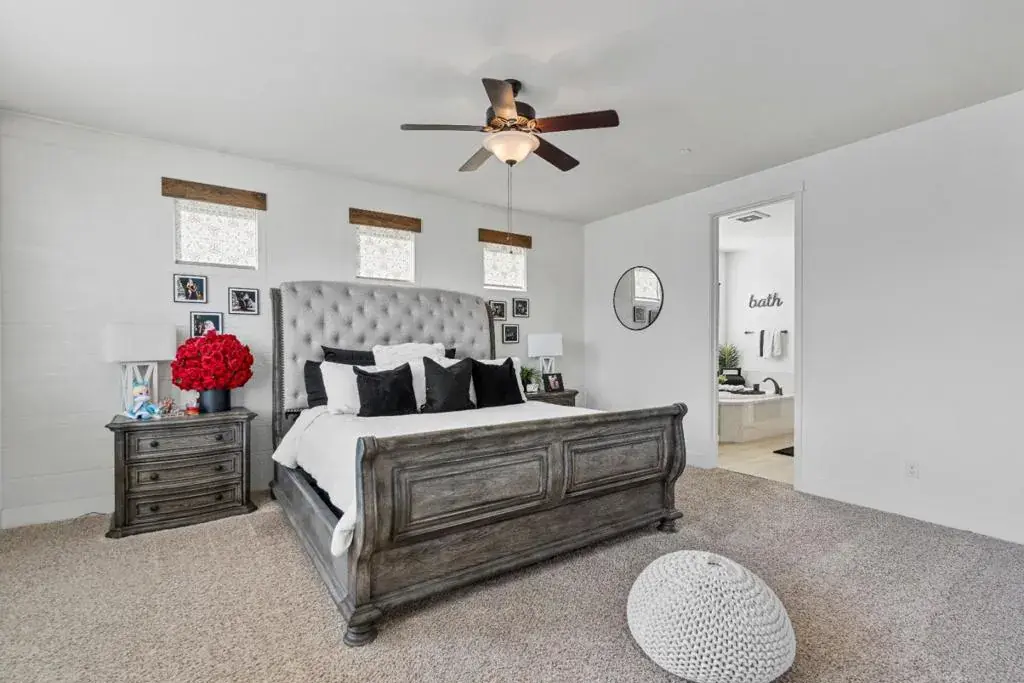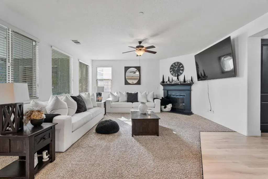 Welcome home to this spacious two-story residence located in the desirable Santana Ranch Neighborhood. Offering 2,698 square feet of open-concept living. This well-appointed home features a first-floor bedroom with a full bathroomperfect as a den or private guest suiteplus flexible space off the entry that can serve as a home office. The gourmet kitchen boasts stainless steel appliances, a huge island, and custom cabinets, adjacent to a warm living area with a corner fireplace that invites gatherings. The large primary retreat on the second floor features abundant windows, a luxurious bathroom with a sizable vanity, and oversized walk-in closets with built-in organizers. An upstairs bonus room provides versatile space for a second family room or office. Perfect for entertaining, the low-maintenance backyard is appointed with a covered patio, fireplace feature, storage shed, BBQ area and room for future outdoor kitchen. Close to schools, shopping and all major amenities.
