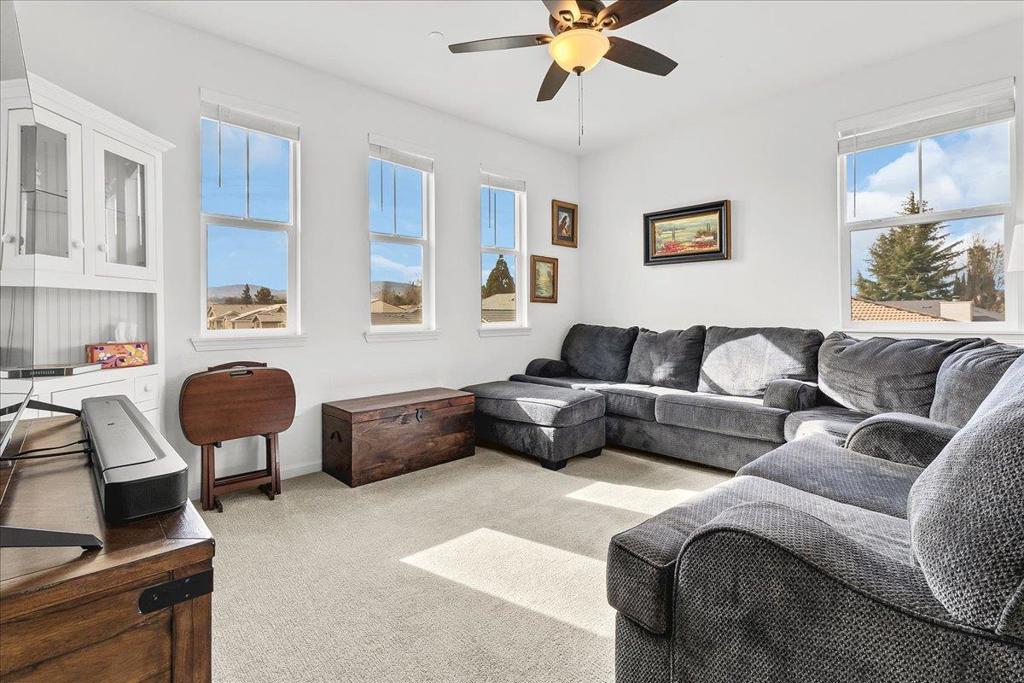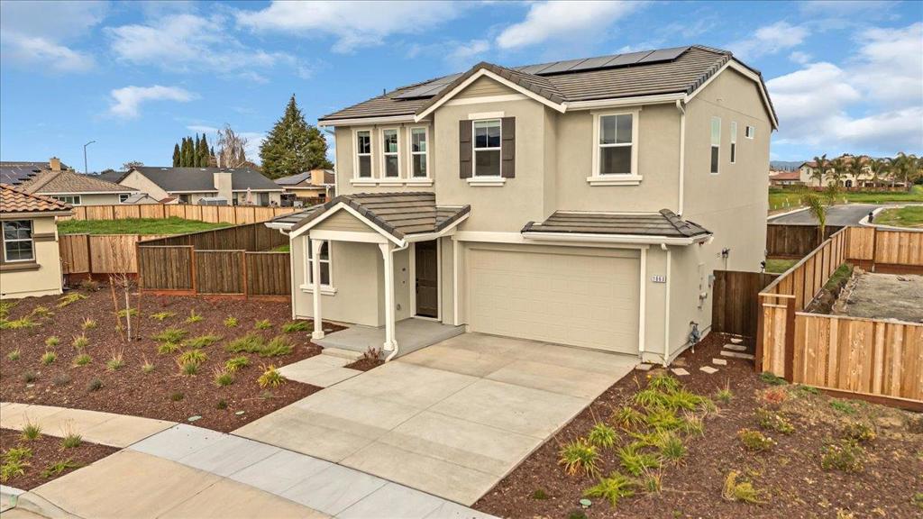 Welcome to 1860 Hydrangea Dr, Hollister, CA 95023 – Located in Highgrove at Fairview, this nearly brand-new home offers the perfect blend of modern design, energy efficiency, and a rare oversized lot without the wait of new construction. Set on an impressive 8,255± sqft lot, the spacious backyard is a standout feature and uncommon for newer homes, offering endless potential for entertaining or creating a custom outdoor retreat. The backyard is equipped with sprinklers and includes a storage shed, adding both convenience and functionality. This thoughtfully designed 3 bedroom, 2.5 bath home includes a separate office and an upstairs loft, providing flexible space for working from home or additional living areas. The main living areas feature luxury vinyl plank flooring throughout the kitchen and living room, highlighted by an electric fireplace that adds warmth to the space. The kitchen is finished with granite countertops, modern cabinetry, and an open layout ideal for everyday living and entertaining. Additional features include a 4.05 kW owned solar system, smart thermostat, EV charger setup, and a finished garage with epoxy floors. A true move-in-ready opportunity to own a like-new home with an exceptional lot in one of Hollister’s desirable newer neighborhoods.