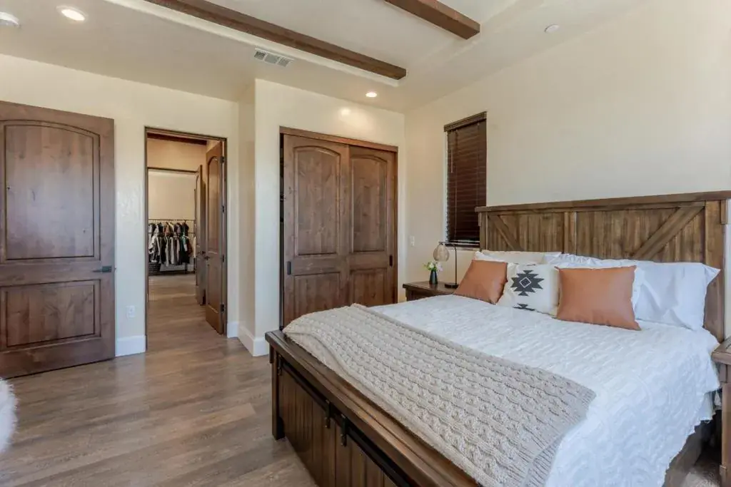 Discover unparalleled luxury in this stunning, nearly new gated estate nestled on over 17 expansive, flat acres. Perfectly designed for entertaining and hosting high-end events, this magnificent home boasts 5,340 square feet of exquisite living space, featuring 7 spacious bedrooms and 6.5 elegant bathrooms. The estate includes an impressive 1,687 square foot 4 car garage with 12-foot-high ceilings, ideal for car enthusiasts or additional storage needs. Step onto the expansive second-floor breezeway and balcony, spanning over 4,216 square feet– an entertainer’s dream, perfectly suited for a sports bar or alfresco gatherings. Surrounded by lush landscaping, the property is adorned with more than 60 mature olive trees, alongside thriving avocado, citrus (lemon, orange, mandarin), guava, and pomegranate trees, as well as striking agave plants, creating a serene and picturesque environment. Experience the perfect blend of elegance, comfort, and nature in this exceptional estate– and an extraordinary opportunity to own a private sanctuary designed for both luxurious living and memorable entertaining. Schedule your private tour today and step into a world of luxury, comfort, and natural beauty.