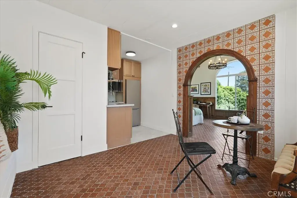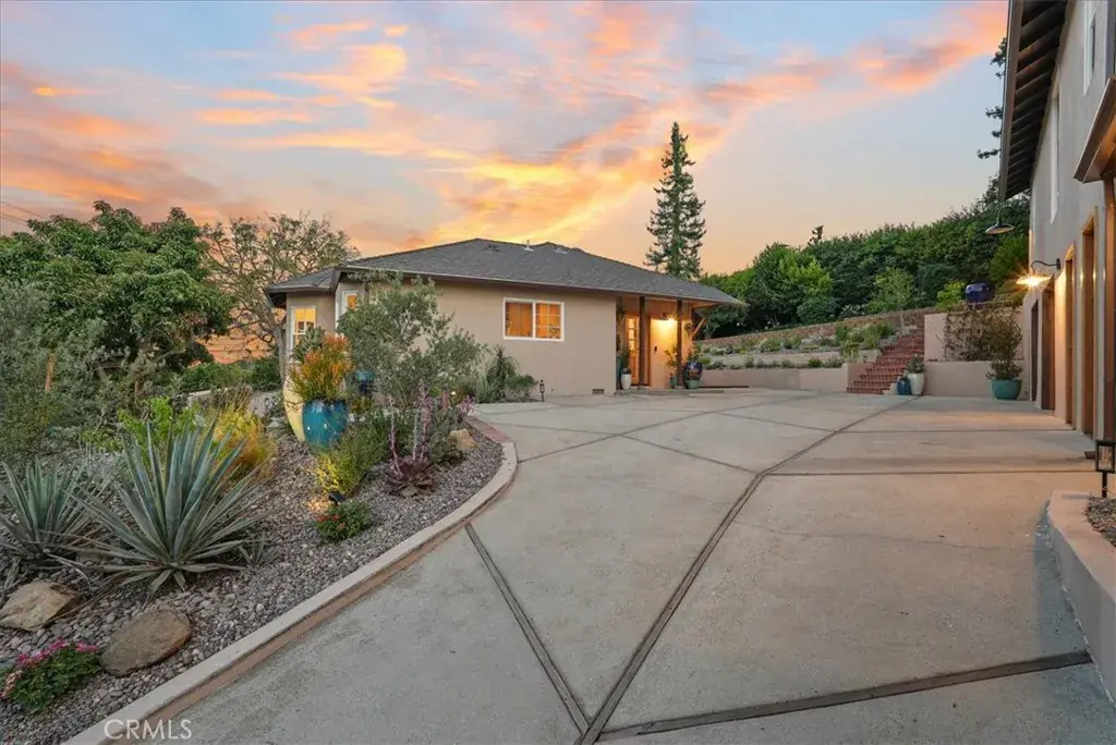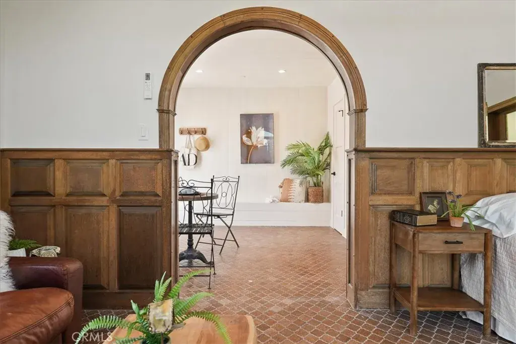 Each space has been thoughtfully upgraded with brand-new handcrafted white oak cabinetry, quartzite countertops, custom tilework, and designer fixtures. The main residence features three bedrooms and two and a half baths, with original floors, windows, and doors preserved to honor the home’s historic character. Set on expansive grounds, the property’s serene outdoor oasis includes meandering garden paths, flowing fountains, raised vegetable beds, a cozy fire pit lounge, and a storybook gazebo surrounded by native landscaping. Woodrow’s Garden provides space for herbs, fruits, and vegetables, while decorative succulents, hanging lanterns, playful swings, and a fruit-bearing avocado tree add charm and abundance.