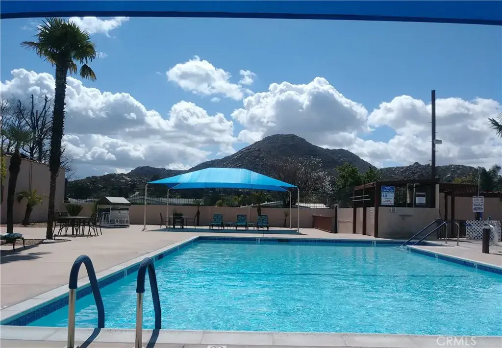 Cute, Clean & Ready to Move In! Great interior location in the wonderful Highland Palms Senior Estates & Country Club – discover this hidden gem of a community just northeast of Menifee, Murrieta and Temecula! 1008 sq ft, 2br, 2ba. Nice open floor plan, with country kitchen that opens to the large living room and dining area with built ins. Large master bedroom with large closet and adjoining master bath. Second large guest bedroom with large walk-in closet.